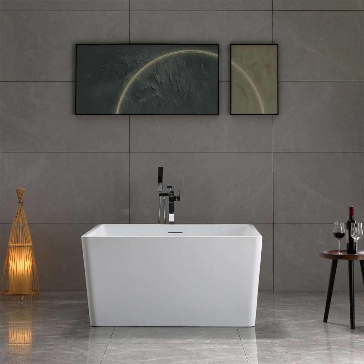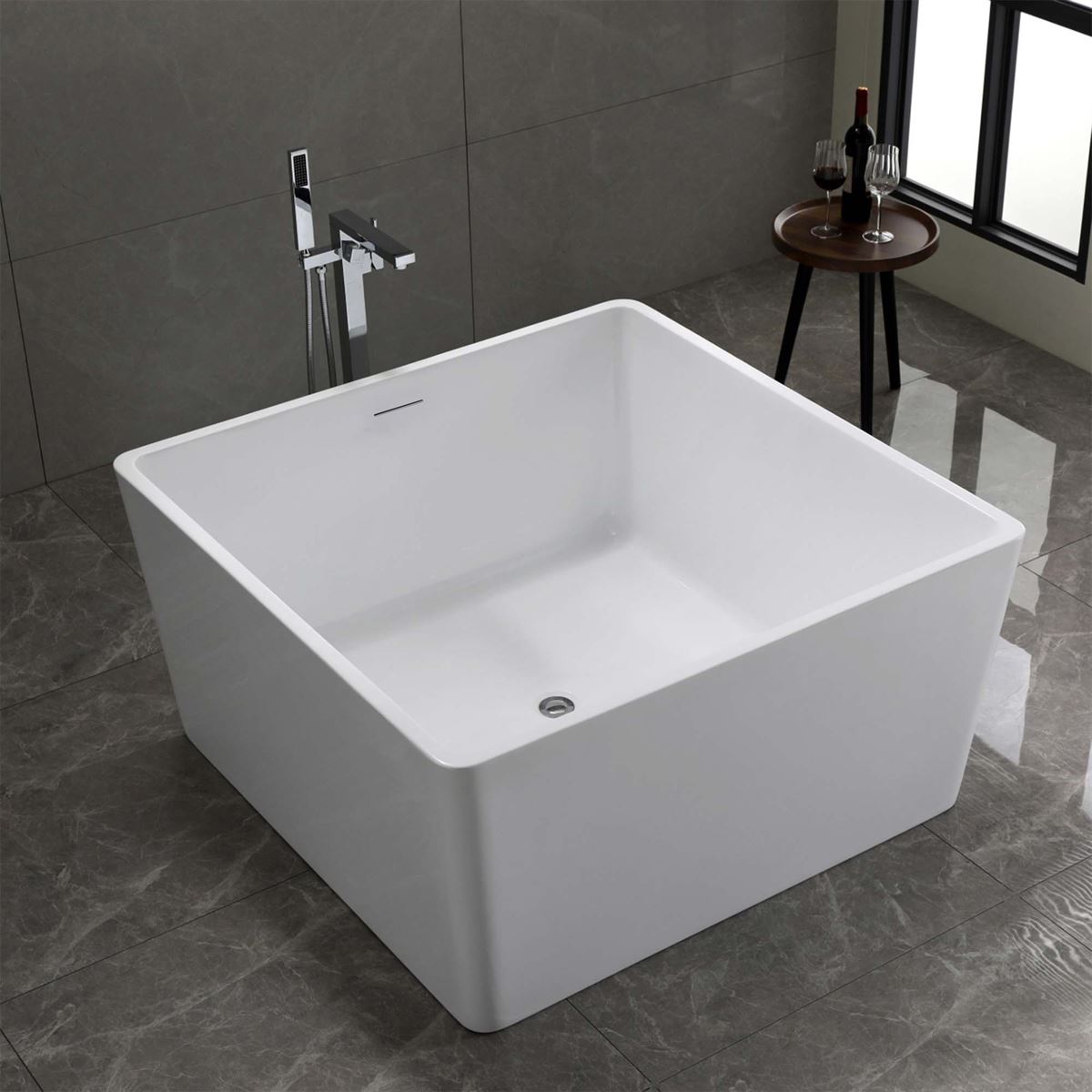 Bring luxury to your home bathroom with this beautiful square acrylic soaking tub. There is no need to compromise on style or comfort with its elegant ergonomic design. It is designed to provide comfortable back support for complete relaxation and deep soaking. In addition, the square shape of this tub gives an incredibly wide and spacious bathing area. This freestanding bathroom centerpiece is seamlessly jointed and has a high gloss finish. With its clean lines and sleek styling, this bath will complement any bathroom.