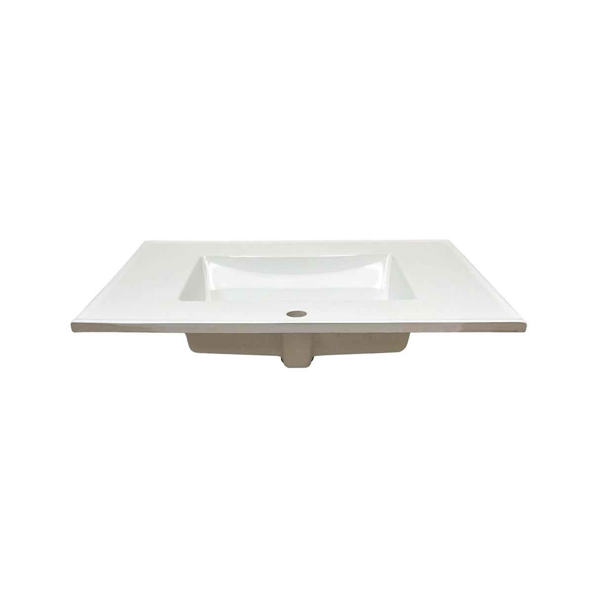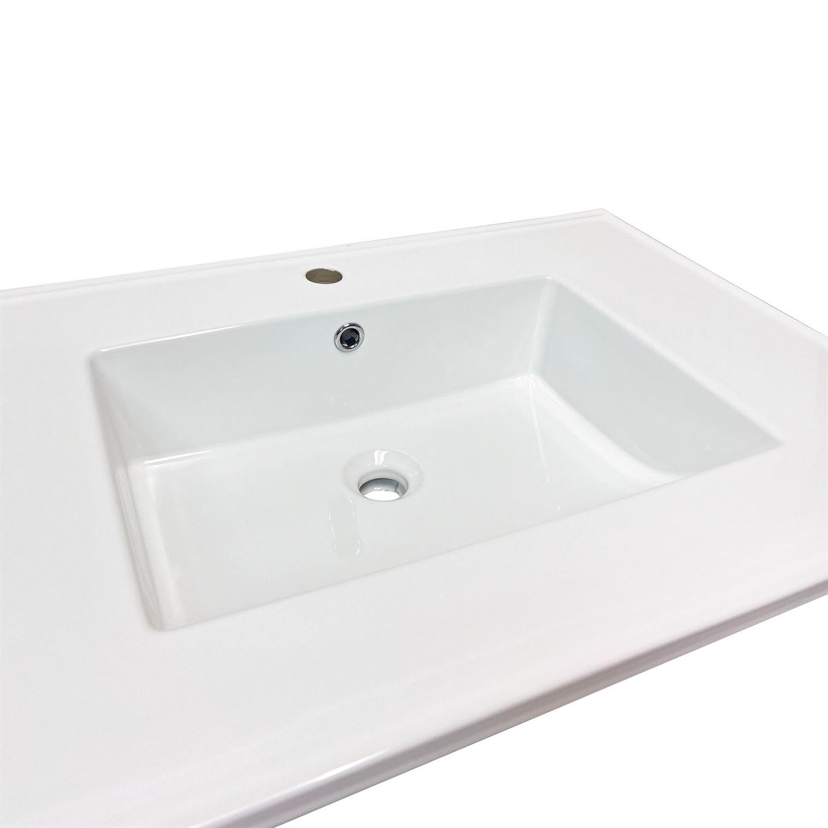 Elevate your bathroom design with the sleek, modern look of our 1-piece Vitreous China sink vanity top. Combining style and functionality, this elegant vanity top is the perfect complement to any standard-sized vanity. The Vitreous China material provides a smooth, non-porous surface that not only enhances the aesthetic but also makes cleaning a breeze. Expertly crafted with double-firing and a high-quality glaze, this integrated sink top ensures long-lasting durability, excellent stain resistance, and a finish that retains its beauty over time. Available in a variety of widths, making it a versatile choice for any bathroom setup. With its seamless design, this vanity top simplifies cleaning, offering both convenience and lasting enjoyment. Certified to meet and exceed cUPC standards, it combines superior craftsmanship with peace of mind, providing a timeless solution for your bathroom needs.