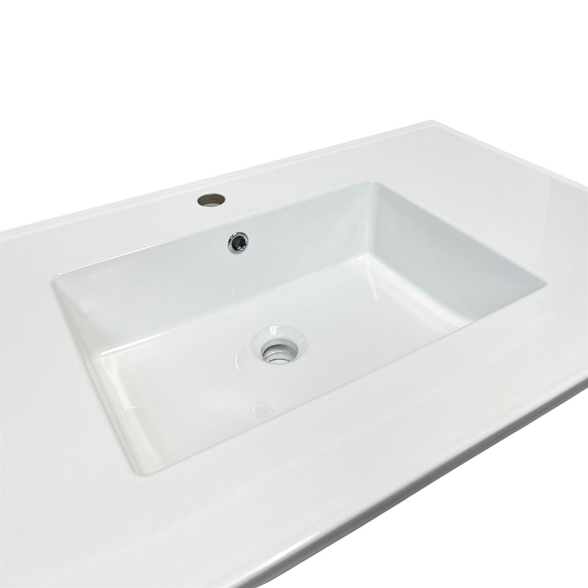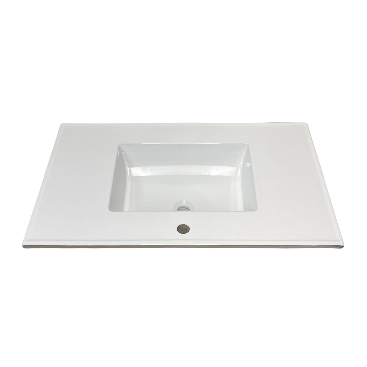 Elevate your bathroom design with the sleek, modern look of our 1-piece Vitreous China sink vanity top. Combining style and functionality, this elegant vanity top is the perfect complement to any standard-sized vanity. The Vitreous China material provides a smooth, non-porous surface that not only enhances the aesthetic but also makes cleaning a breeze. Expertly crafted with double-firing and a high-quality glaze, this integrated sink top ensures long-lasting durability, excellent stain resistance, and a finish that retains its beauty over time. Available in a variety of widths, making it a versatile choice for any bathroom setup. With its seamless design, this vanity top simplifies cleaning, offering both convenience and lasting enjoyment. Certified to meet and exceed cUPC standards, it combines superior craftsmanship with peace of mind, providing a timeless solution for your bathroom needs.