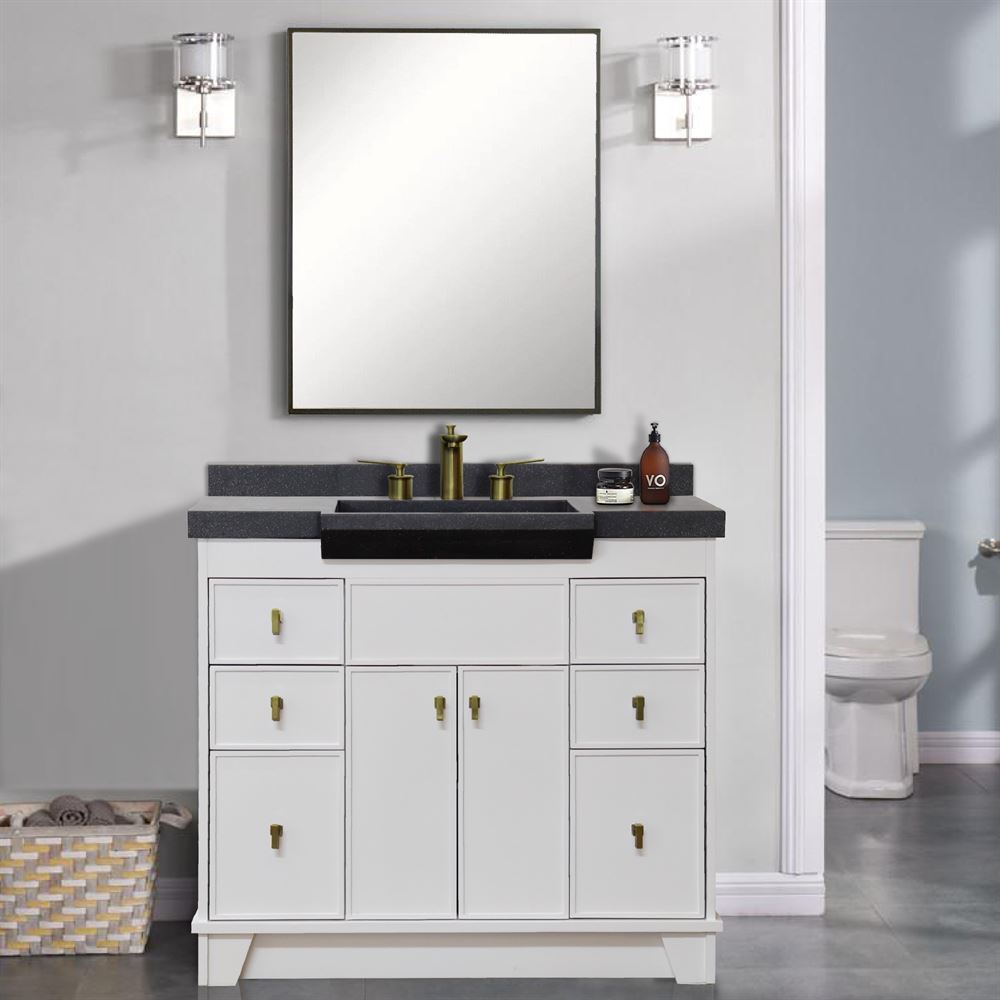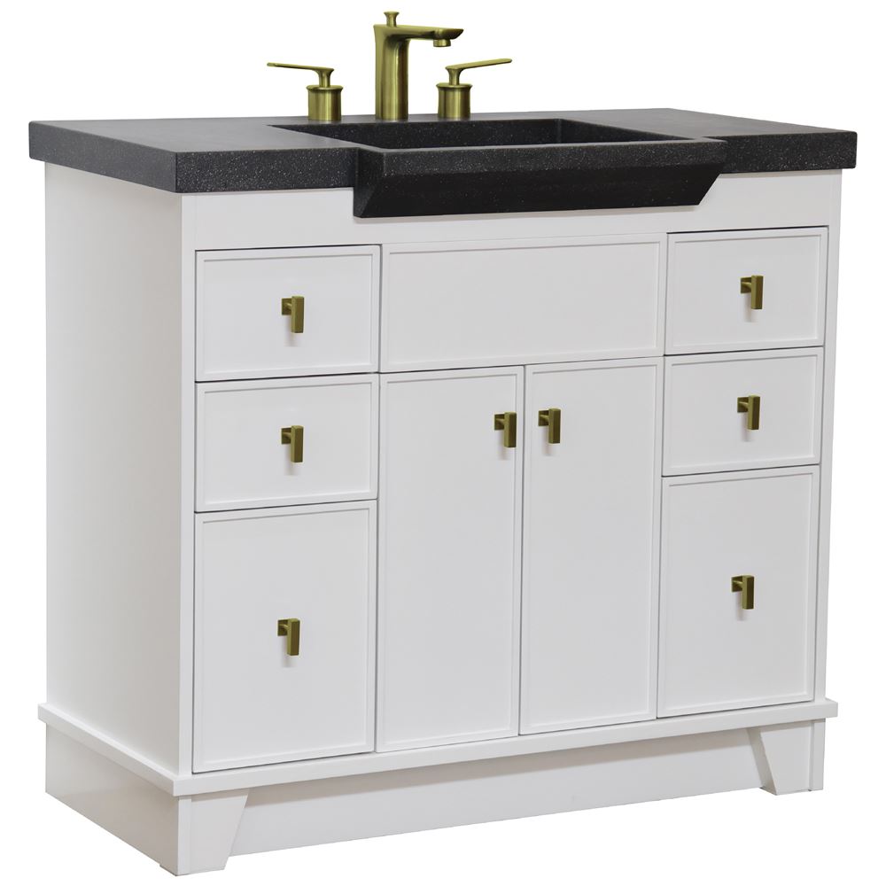 DISCONTINUED : 39 in Single Sink Vanity White Finish in Black Concrete Top and Gold Hardware