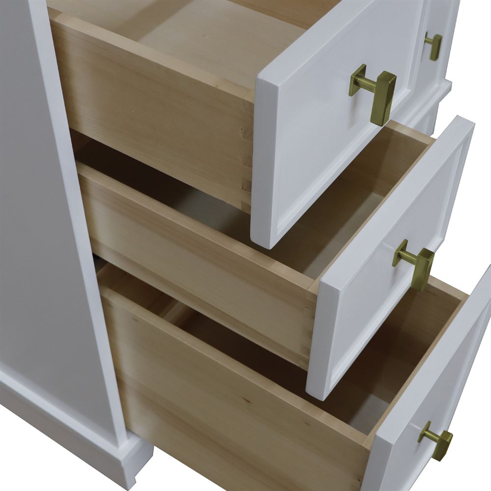 • Furniture grade semi-closing waterproof wood finish protects against bathroom humidity