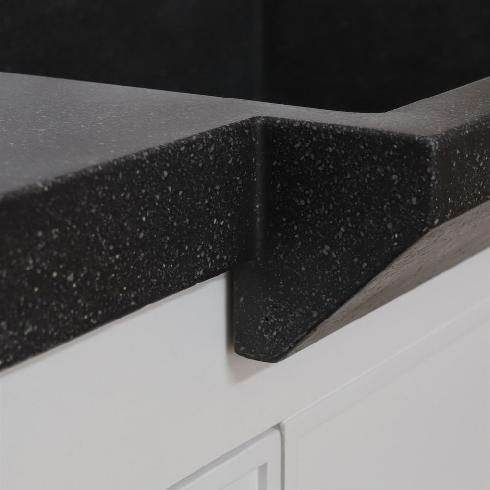 • Top is pre-drilled for a three-hole faucet with an 8" spread