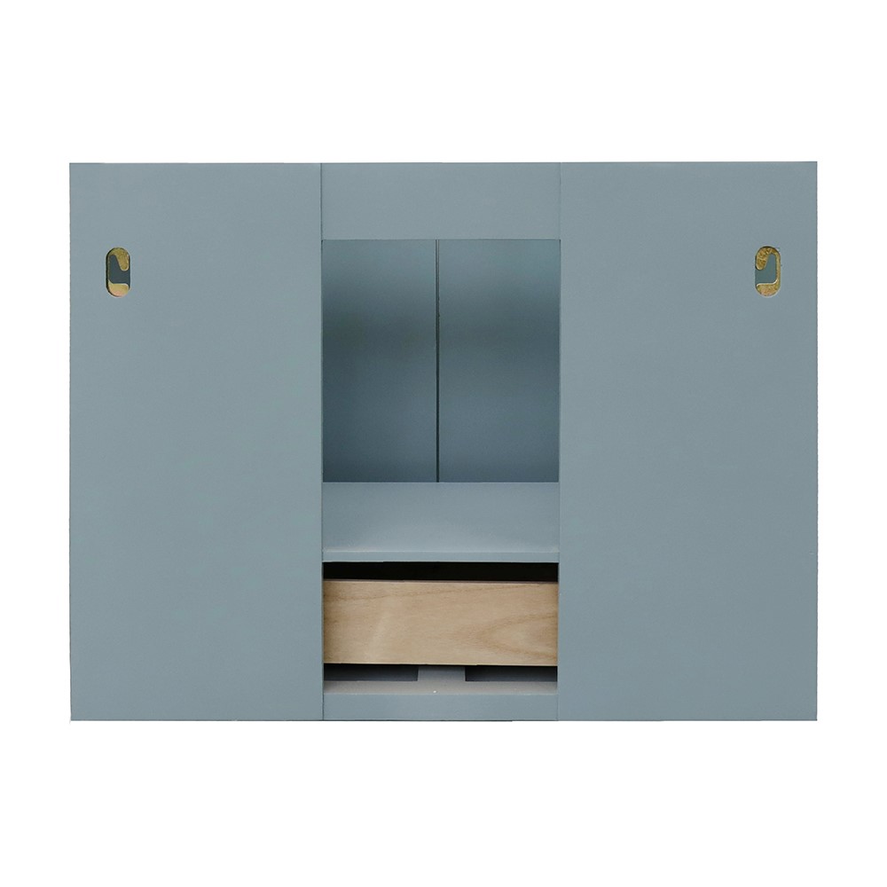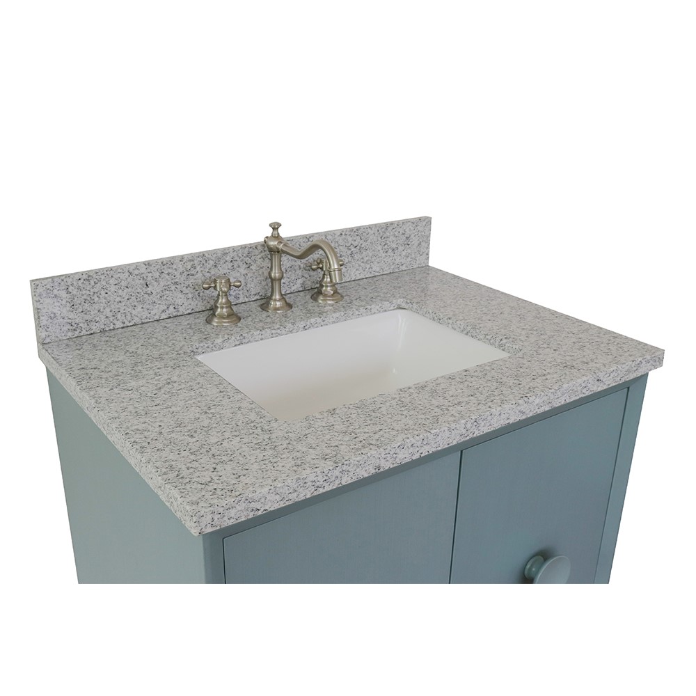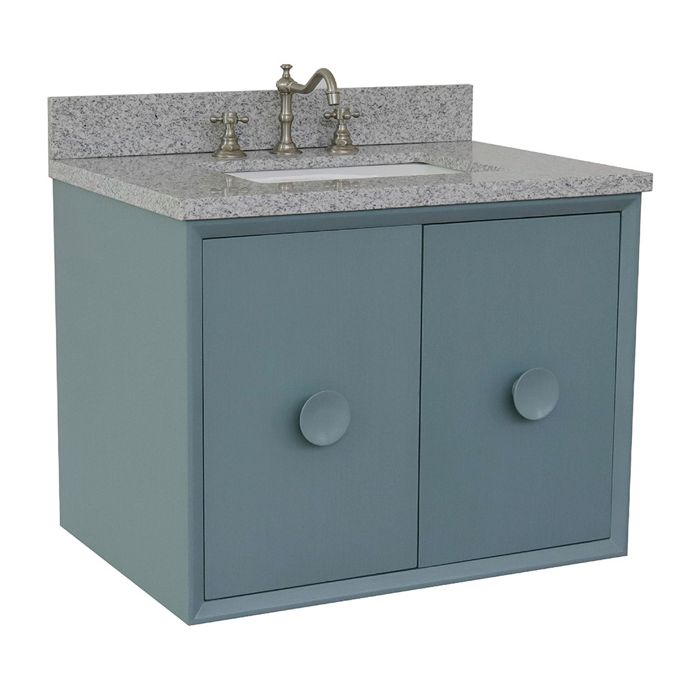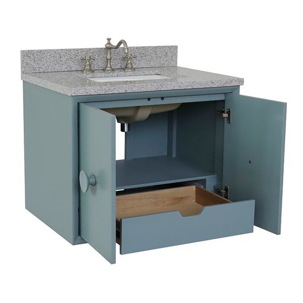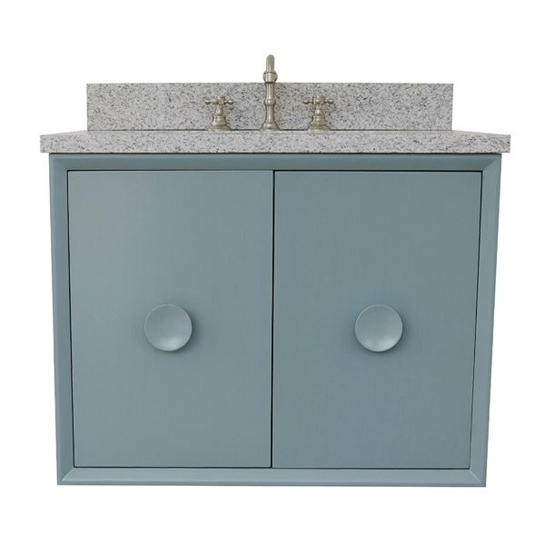 The Stora collection by Bellaterra Home features a traditional cabinet with a modern twist. It is constructed with solid oak top with birch veneer. On all of the corners, it has full corner blocks for stability and additional support for the counter top. It is hand applied with multiple layers of ecofriendly stain and top coat to prevent pealing, cracking and fading. The interior finish is consistent throughout and matches the exterior finish. This cabinet offers immaculate styling while concealing a fantastic amount of storage behind a set of doors. The interior drawer is constructed with English dovetail and smooth full extension glide. The eye-catching 3.5in. door handles enhance the simple yet elegant look of this vanity offers. This collection is offered in two configurations, wall mount or freestanding. Each cabinet is configured to work with our variety of countertops or any standard sized tops. This vanity is available in: White and Aqua blue. This elegant bathroom vanity top features a 1.3in. thick genuine stone top preinstalled with a white cUPC certified ceramic sink. A matching backsplash is available for additional purchase for the utmost beauty and functionality. It will easily match many home interiors. Our vanity tops are pre-drilled with faucet holes. Bellaterra Homes counter tops are pre-sealed and polished for added protection. All genuine stone material has its variation of veining pattern and color; every top will be slightly different.