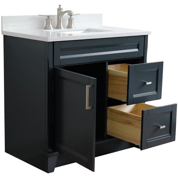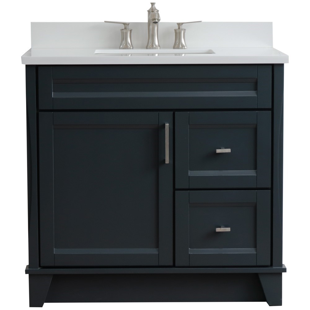 DISCONTINUED : Terni 37 in. Single Vanity in Dark Gray Finish with White Engineered Stone Top, Rectangle Sink - Left Door/Center Sink