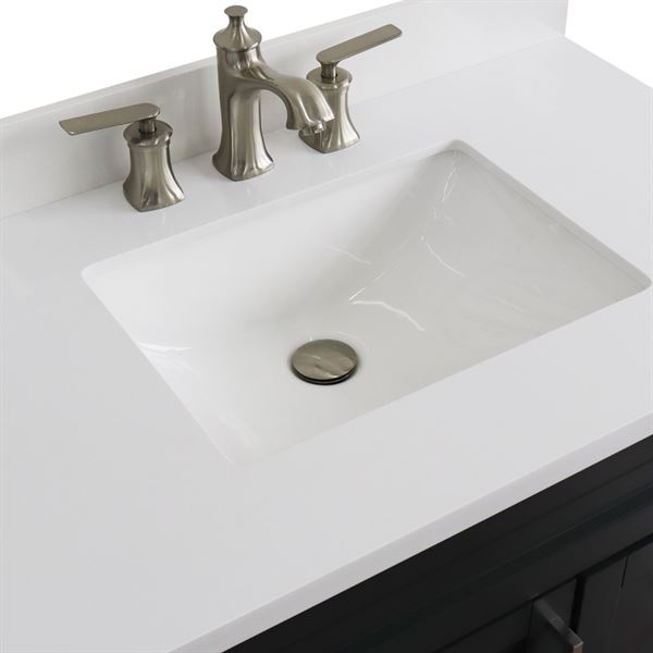 • Vanity top is pre-drilled with 3 faucet holes for an 8 in. widespread faucet (faucet not included)