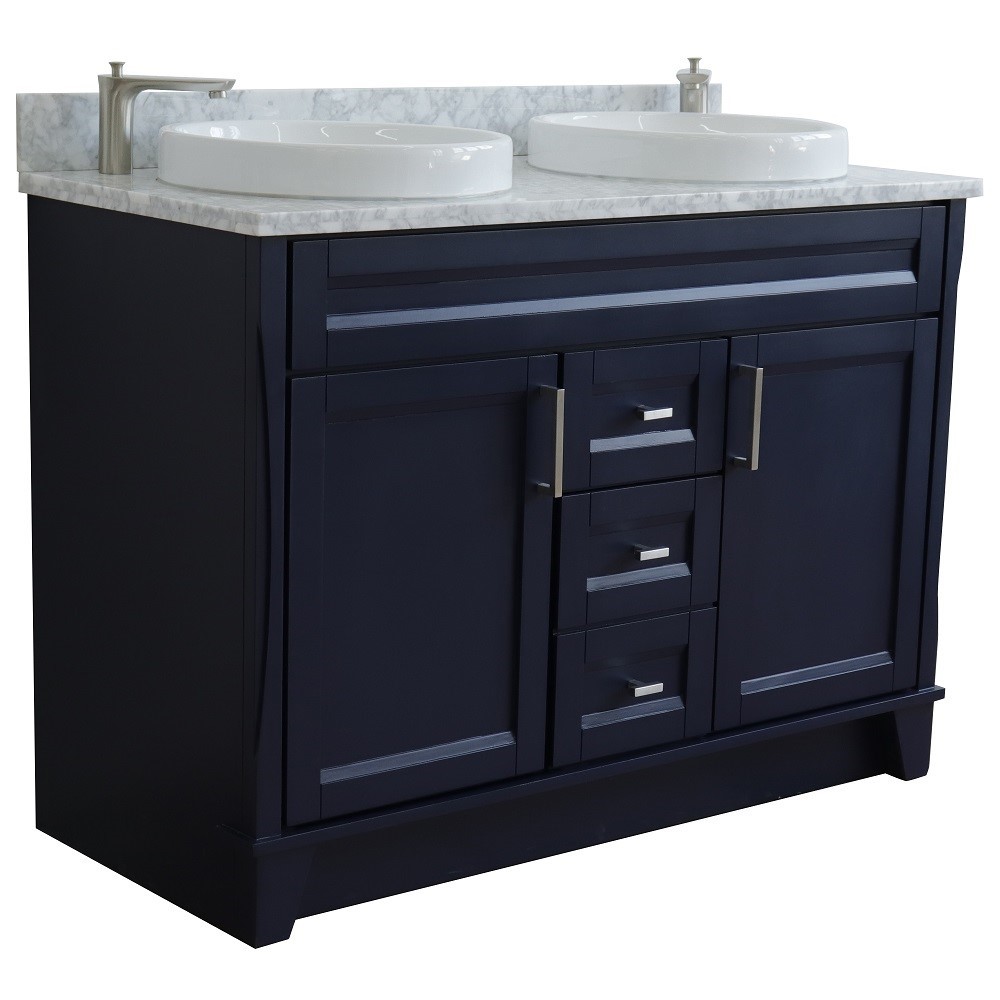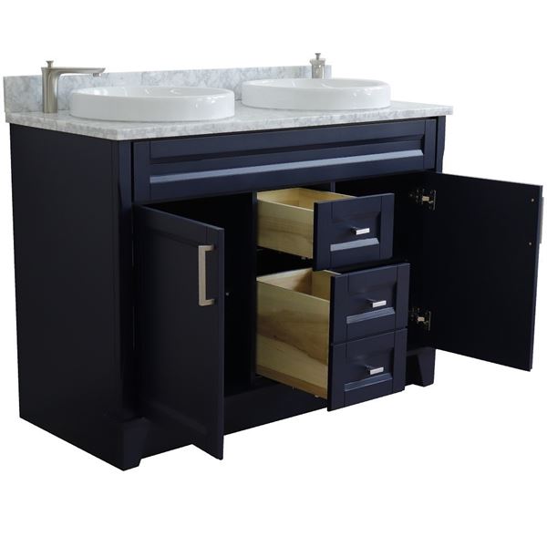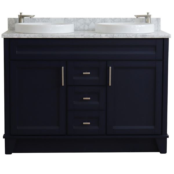 The Terni collection by Bellaterra Home features simple style bathroom vanities that can integrate seamlessly with any home design. From a simple or to the grand home design, you will appreciate this beautifully crafted piece of furniture as the focal point in your bathroom. The structure of the cabinet is built with solid oak. The vanity has two drawers and two cabinet doors that open to a large ample storage space. The drawers are constructed with English dovetail and are installed with smooth full extension glides to provide durability. This vanity features brushed nickel finish hardware and a beautiful counter top that is pre-sealed and polished for added protection. The bathroom vanity top is preinstalled with two white cUPC certified ceramic sinks.