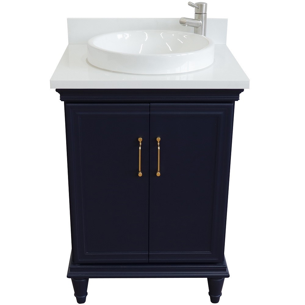 DISCONTINUED : Forli 25 in. Single Vanity in Blue Finish with White Engineered Stone Top, Round Sink
