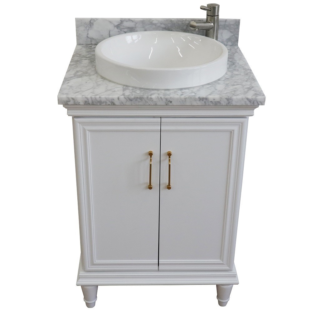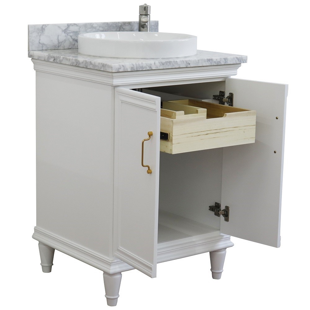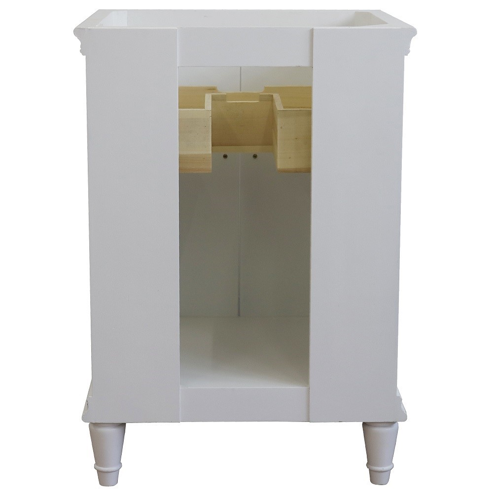 The Forli collection by Bellaterra Home features stunning bathroom vanities that can seamlessly integrate with any home design. The classic simplicity and elegance of this beautifully crafted piece of furniture will be the highly appreciated focal point in your bathroom. The cabinet doors open to a large storage space and an interior drawer that can be configured to fit any personal needs. The hidden drawer is constructed with English dovetail and includes built in wood drawer dividers for easy and functional organization. The drawer is installed with smooth full extension glides which provide durability. This vanity features gold finish hardware and a beautiful counter top that is pre-sealed and polished for added protection. The bathroom vanity top is preinstalled with a white cUPC certified ceramic sink.