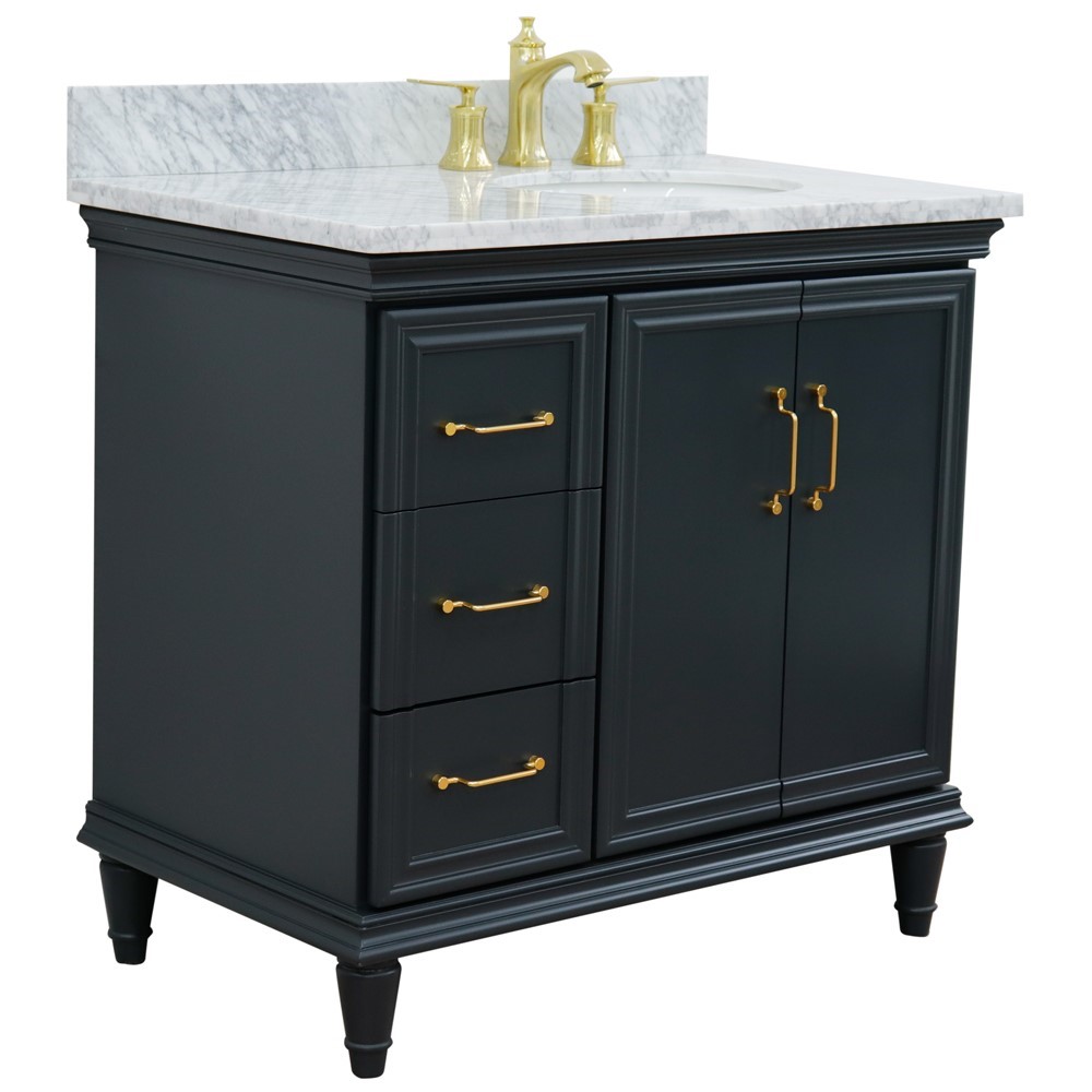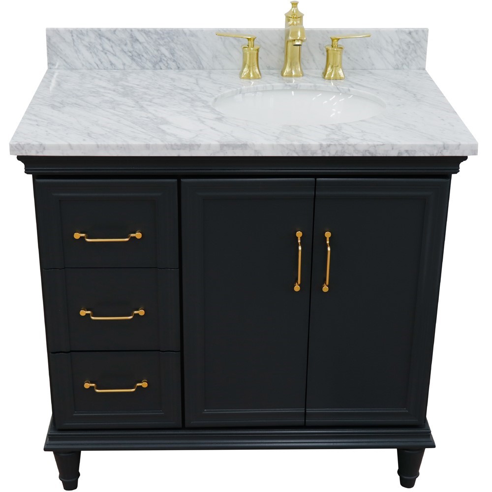 Forli 37 in. Single Vanity in Dark Gray Finish with White Carrara and Oval Sink- Right Door/Right Sink