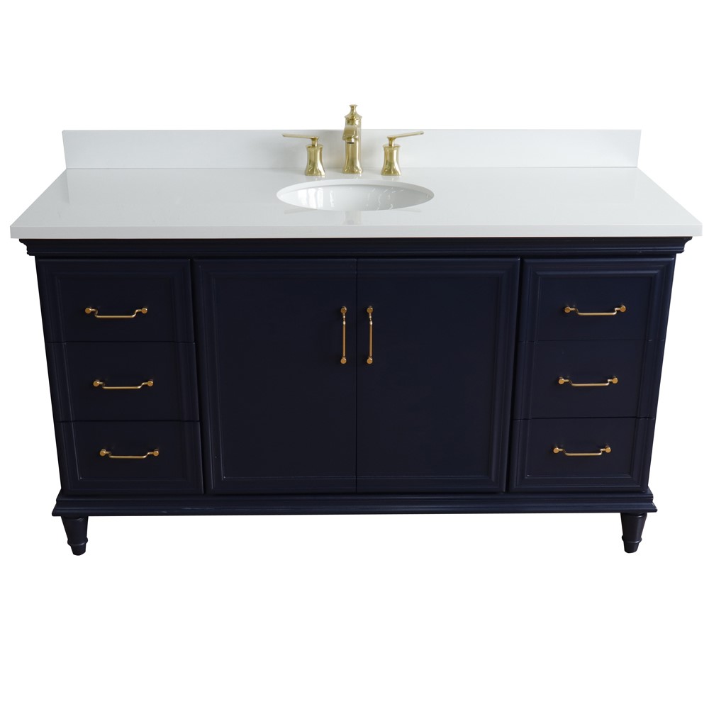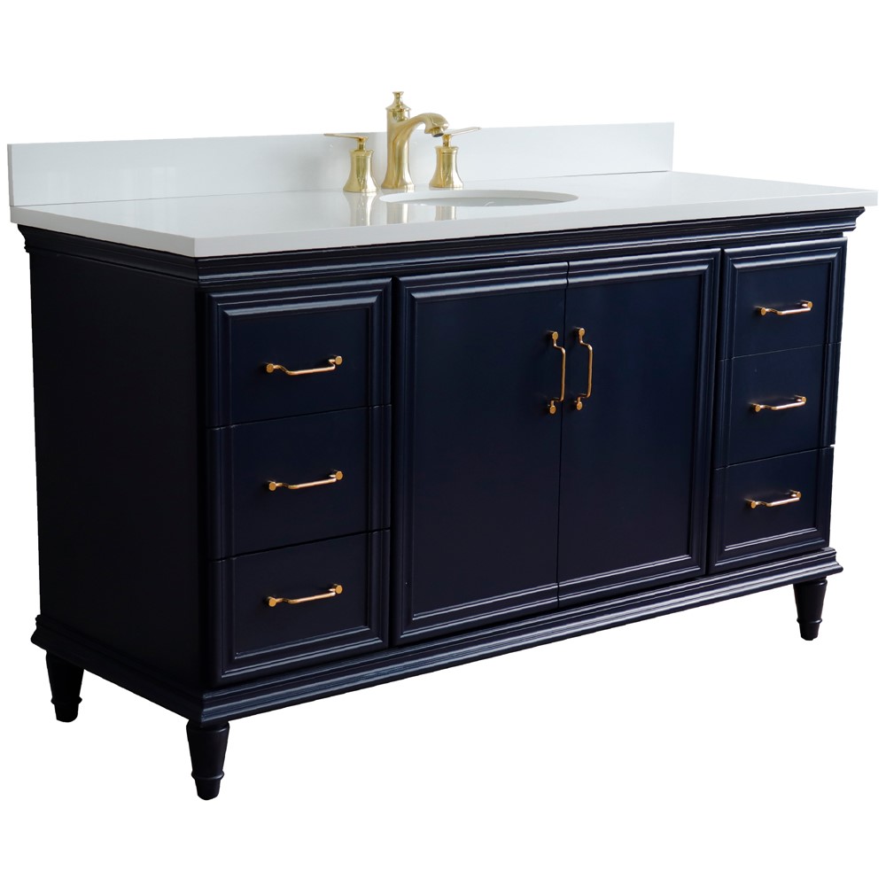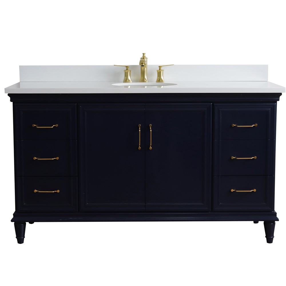The Forli collection by Bellaterra Home features stunning bathroom vanities that can seamlessly integrate with any home design. The classic simplicity and elegance of this beautifully crafted piece of furniture will be the highly appreciated focal point in your bathroom. This vanity has six drawers and two cabinet doors that open to a large ample storage space. The drawers are constructed with English dovetail and are installed with smooth full extension glides to provide durability. This vanity features gold finish hardware and a beautiful counter top that is pre-sealed and polished for added protection. The bathroom vanity top is preinstalled with a white cUPC certified ceramic sink.