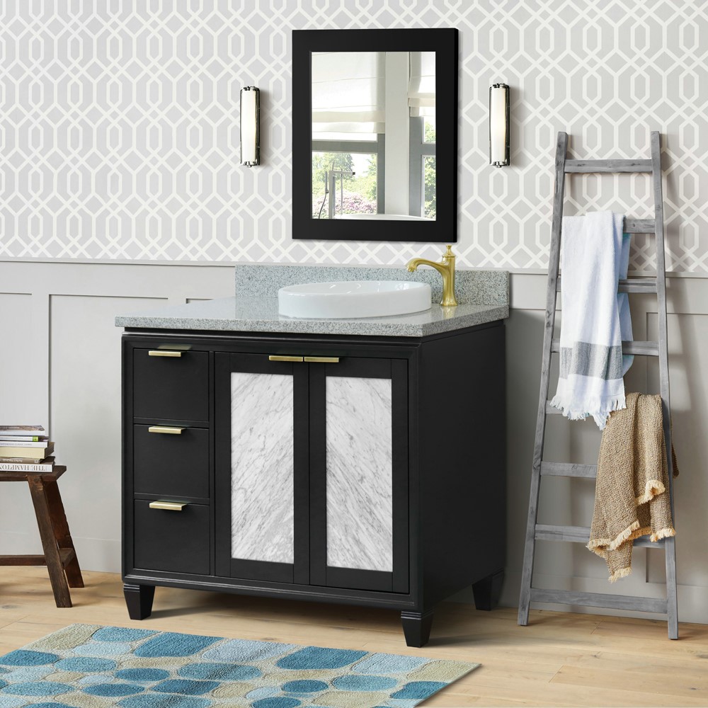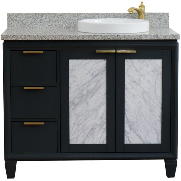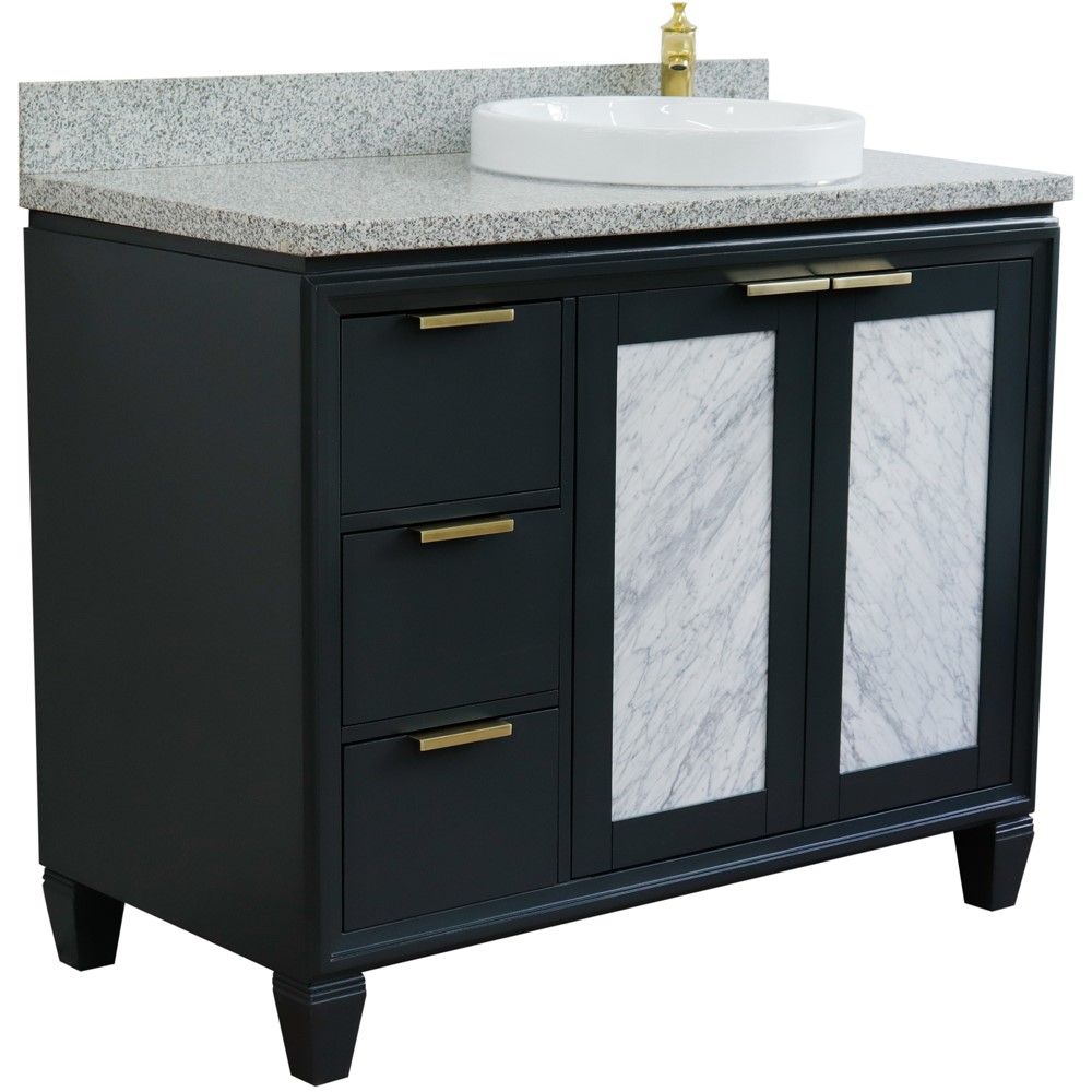 43 in. Single Vanity in Dark Gray Finish with Gray Granite and Round Sink Right Door/Right Sink, Trento Collection, Trento Collection-
