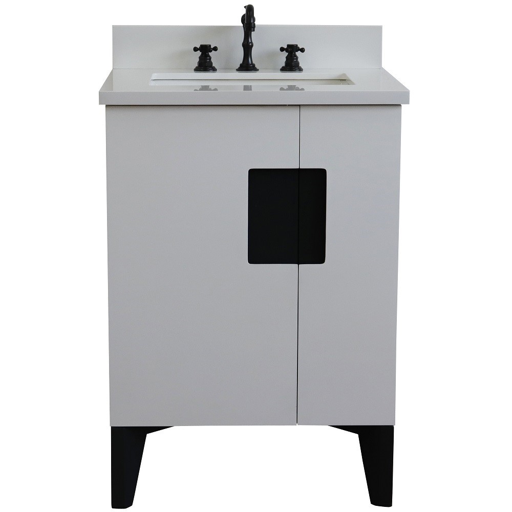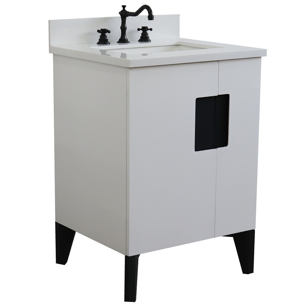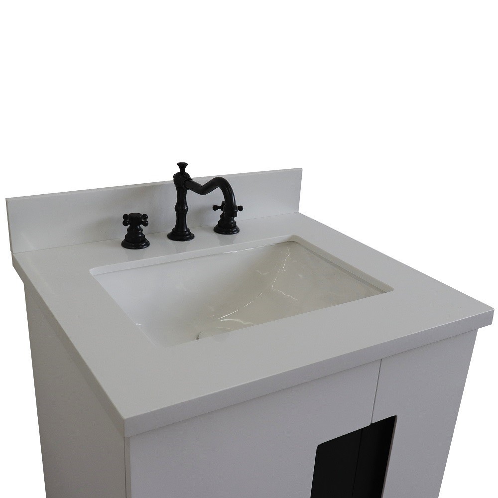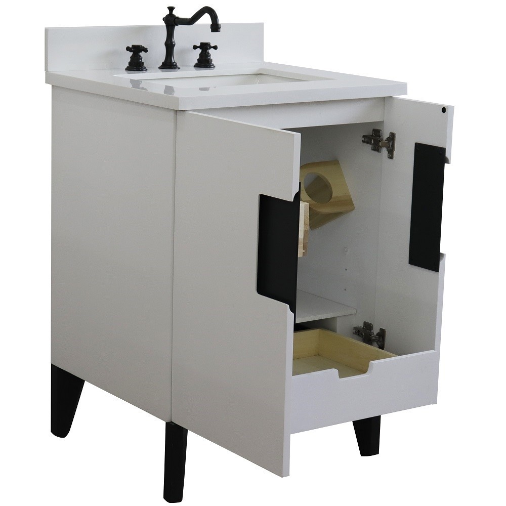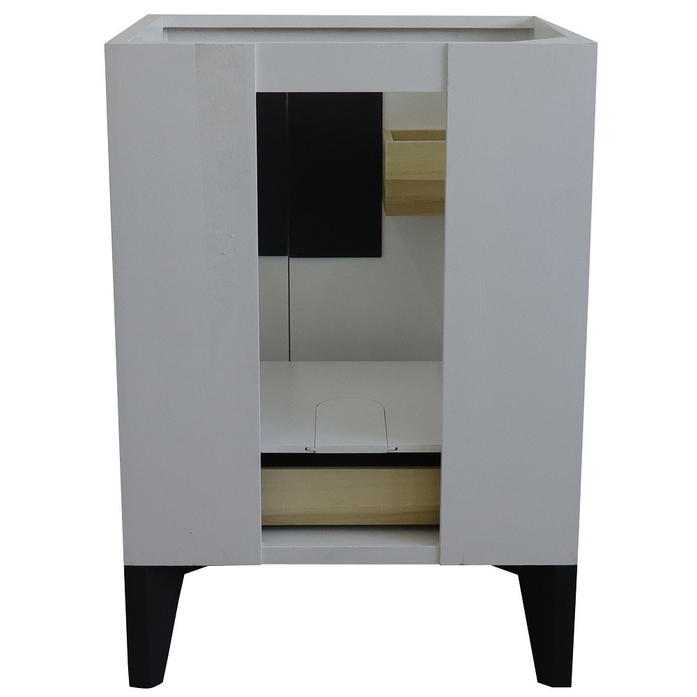 The Kolb collection by Bellaterra Home features simple style bathroom vanities that can integrate seamlessly with any home design. From a simple or to the grand home design, you will appreciate this beautifully crafted piece of furniture as the focal point in your bathroom. The structure of the cabinet is built with solid oak. The vanity has one internal drawer and two cabinet doors that open to a large ample storage space. The drawers are constructed with English dovetail and are installed with smooth full extension glides to provide durability. This vanity features brushed nickel finish hardware and a beautiful genuine stone counter top that is pre-sealed and polished for added protection, preinstalled with a white cUPC certified ceramic sink.