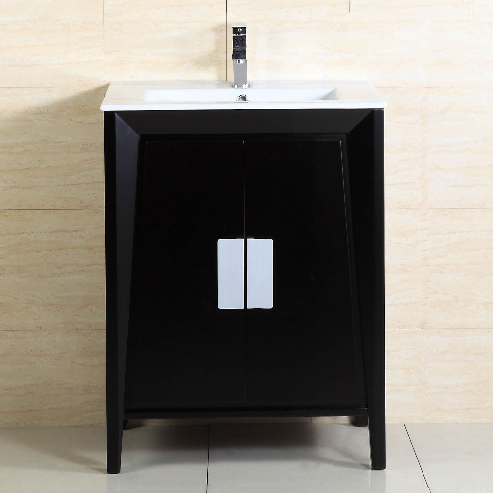 This slim vanity is a great transitional piece for any bathroom with limited space. Not only is it a space saver, but a beauty with its dark espresso finish and white ceramic sink. This slick design features 2 soft close doors, 1 shelf, and nickel door handles. Constructed with solid wood / imported plywood, and multi-layer of protective coat will ensure durability and ensure waterproof wood finish to withstand the humidity in the bathroom.