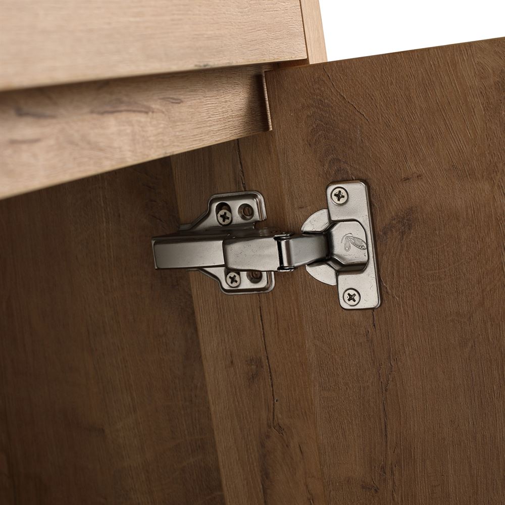 - Clean lined doors, soft-close hinges