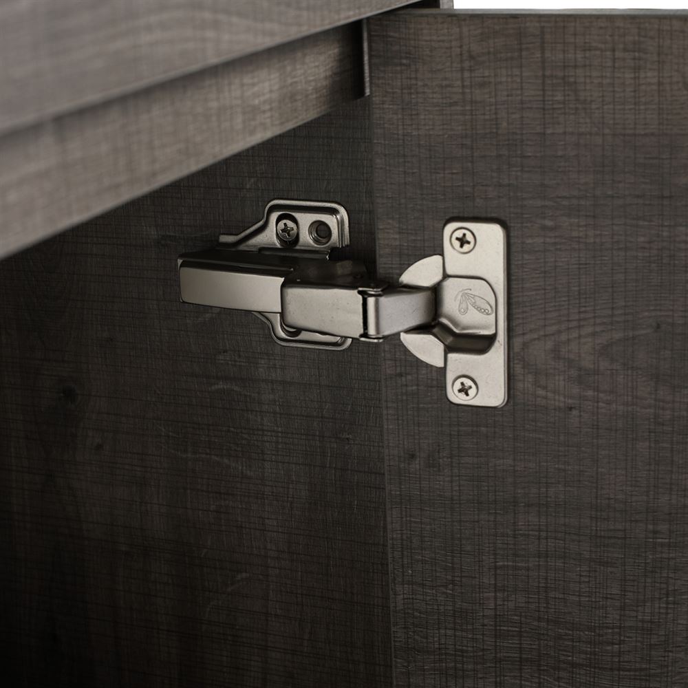 Behind its soft-close hinged, clean lined doors are an adjustable shelf and generous storage space. The vanity is elevated by metal corner legs to fortify its stability and complete its timeless beauty. Our vanity is delivered in a “flat pack” design with clear step-by-step instructions, eliminating the need for professional installation. Faucet and drain not included.
