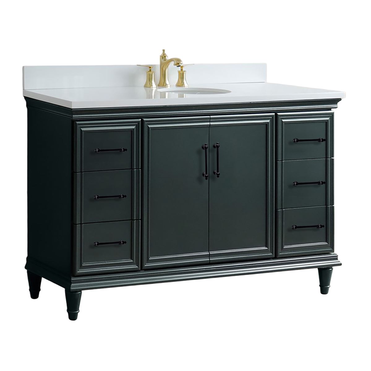 The Forli collection by Bellaterra Home features stunning bathroom vanities that can seamlessly integrate with any home design. The classic simplicity and elegance of this beautifully crafted piece of furniture will be the highly appreciated focal point in your bathroom. This vanity has six drawers and two cabinet doors that open to a large ample storage space. The drawers are constructed with English dovetail and are installed with smooth full extension glides to provide durability. This vanity features black finish hardware and a beautiful counter top that is pre-sealed and polished for added protection. The bathroom vanity top is preinstalled with a white cUPC certified ceramic sink.