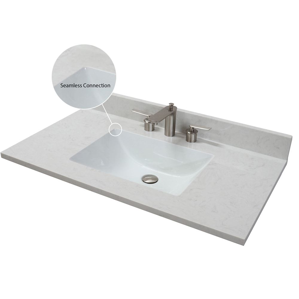 • 1 inch thick solid white engineered stone top