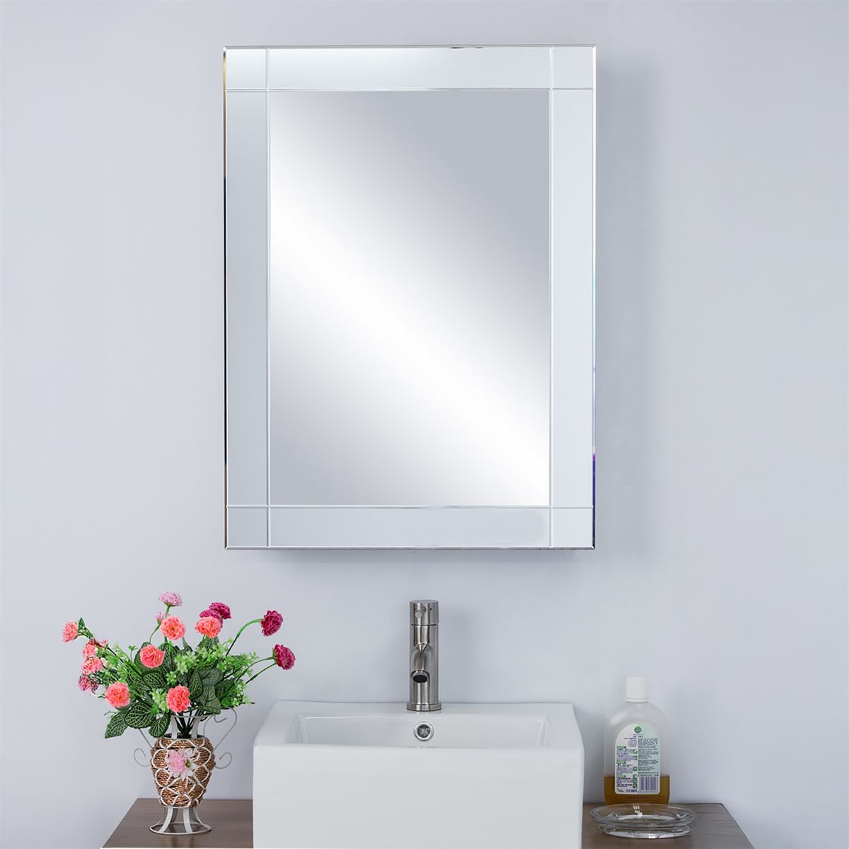 Complete your bathroom with a medicine cabinet that not only provides a classic mirror but plenty of storage space with its adjustable glass shelves. With a powder coated steel body and mirror frame it up hold to the wear and tear of the normal bathroom use while still giving the classic bathroom look. The cabinet has a sleek design to set in the wall to provide greater storage space without the bulky look. Whether your bathroom has a simple or complex design this will give a nice touch with extra storage. This unique yet classy mirror cabinet will give any bathroom that WOW factor that you are looking for