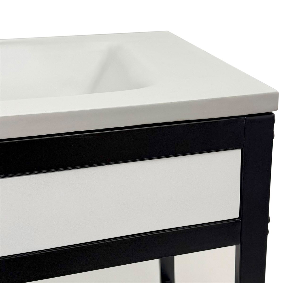 - Matte black metal framed vanity