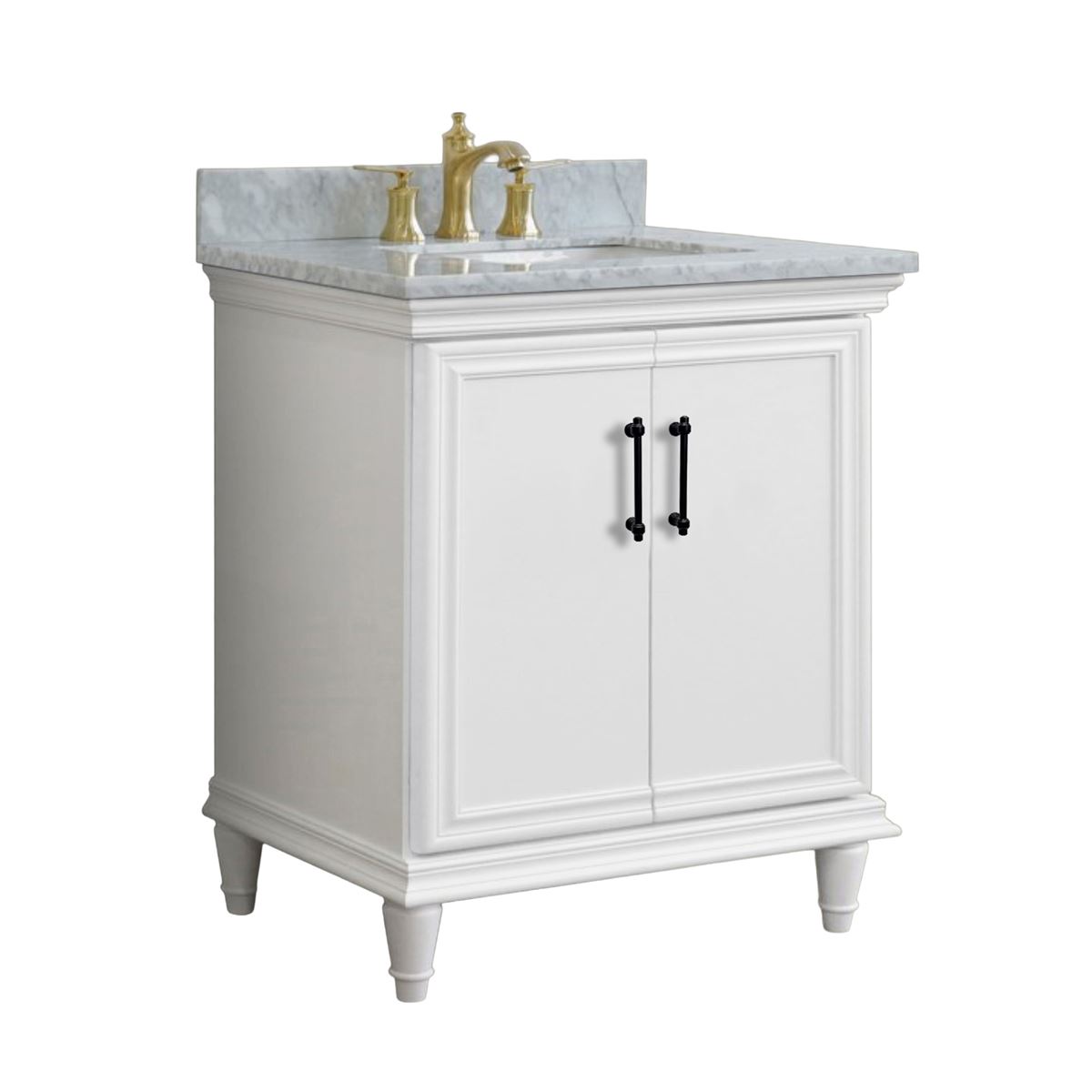 31" Single Vanity in White Finish with White Carrara and Rectangle Sink