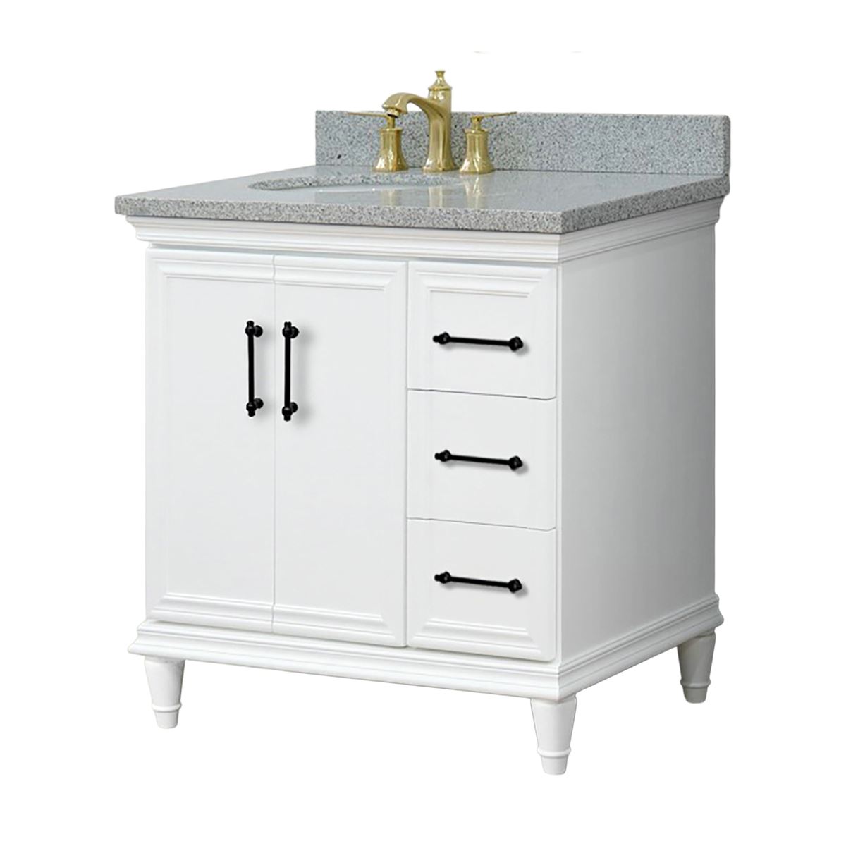 37" Single Vanity in White Finish with Gray Granite and Oval Sink- Left Door/Left Sink