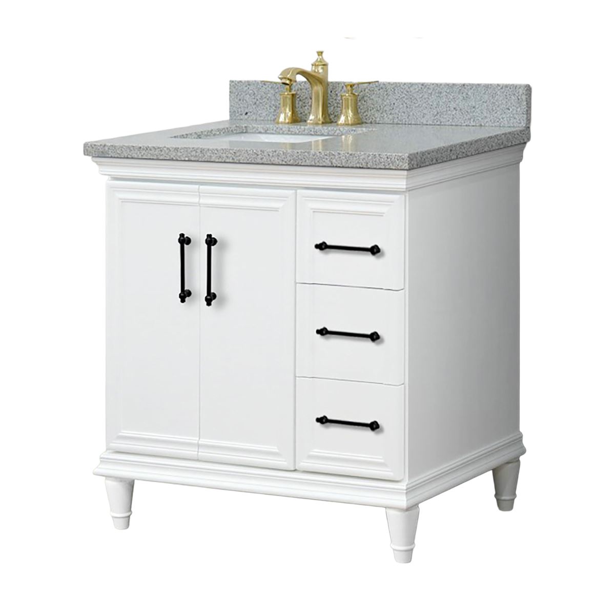 37" Single Vanity in White Finish with Gray Granite and Rectangle Sink- Left Door/Left Sink
