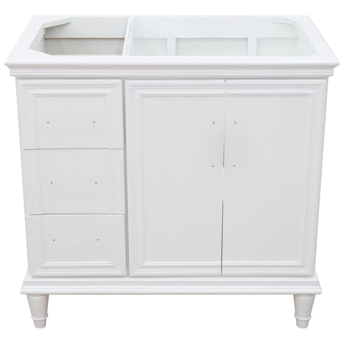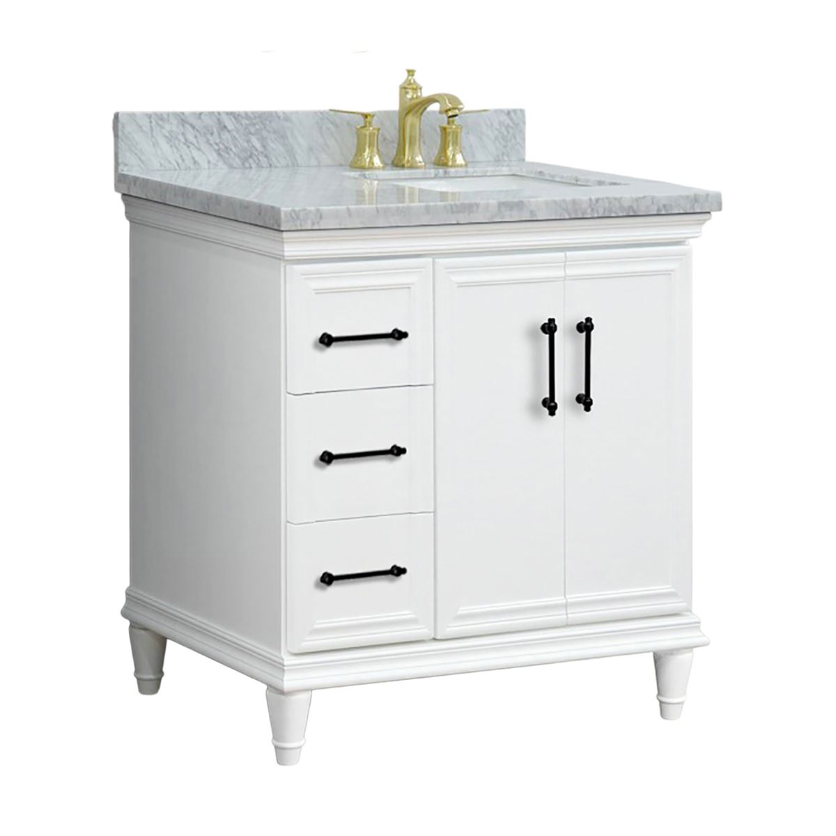 37" Single Vanity in White Finish with White Carrara and Rectangle Sink- Right Door/Right Sink