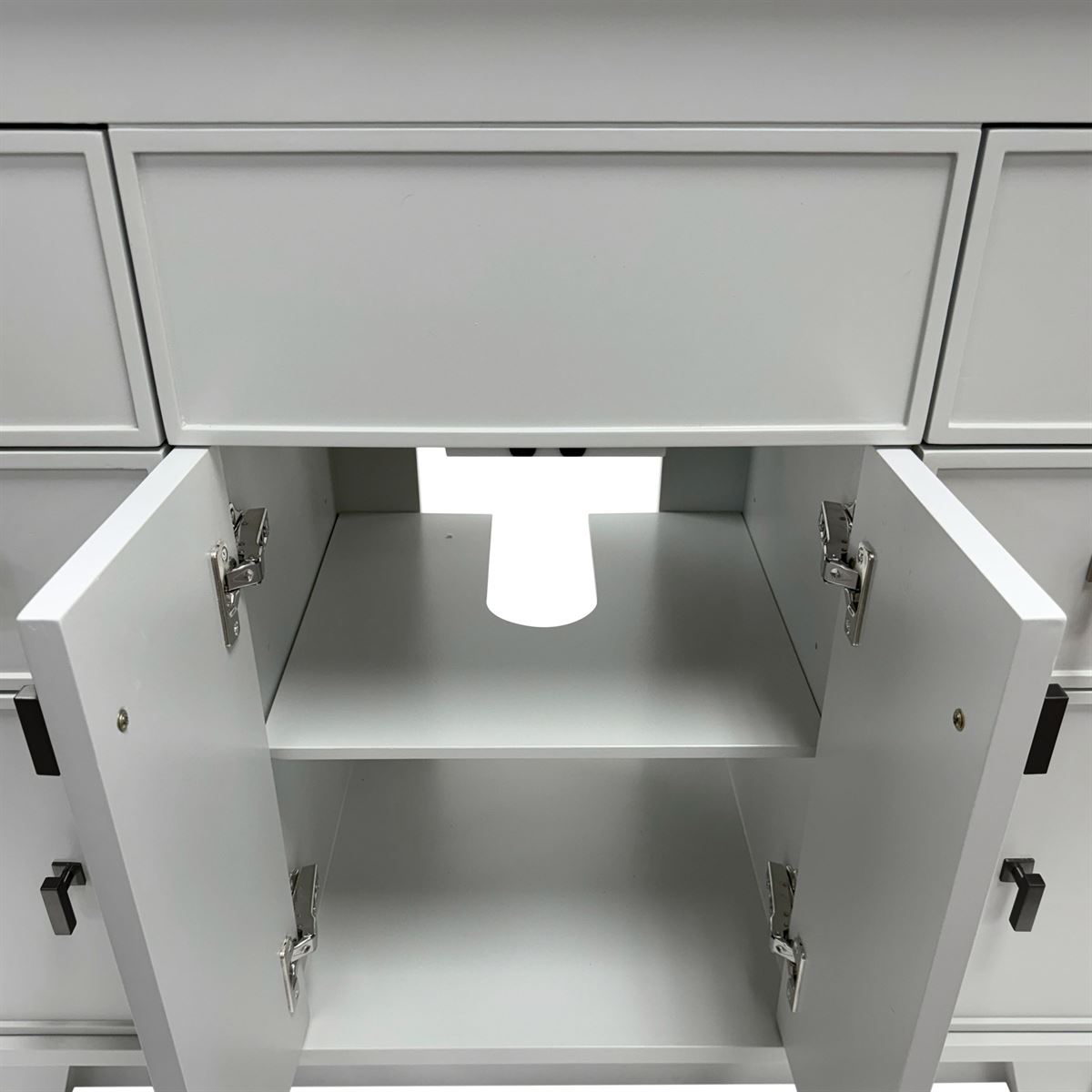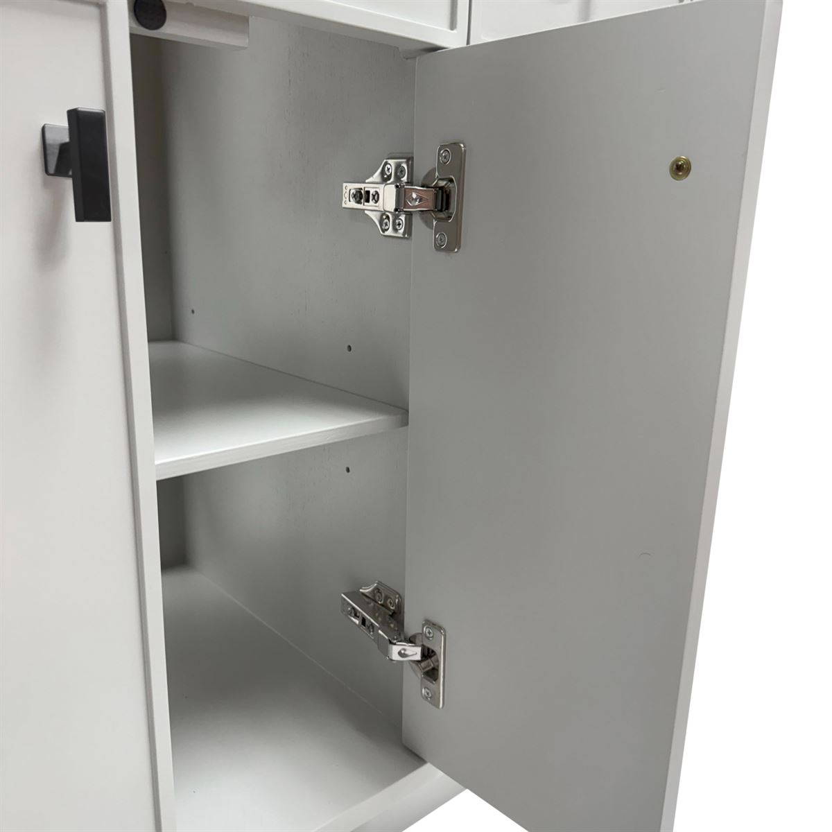 - Decorative hardware elevates both the look and functionality of the vanity