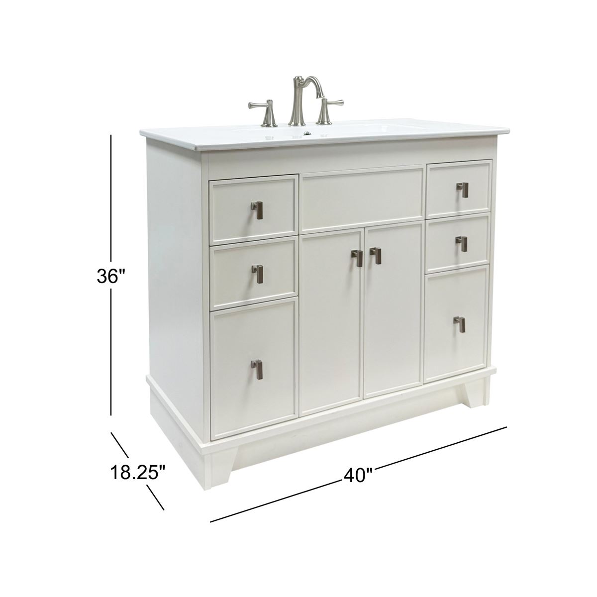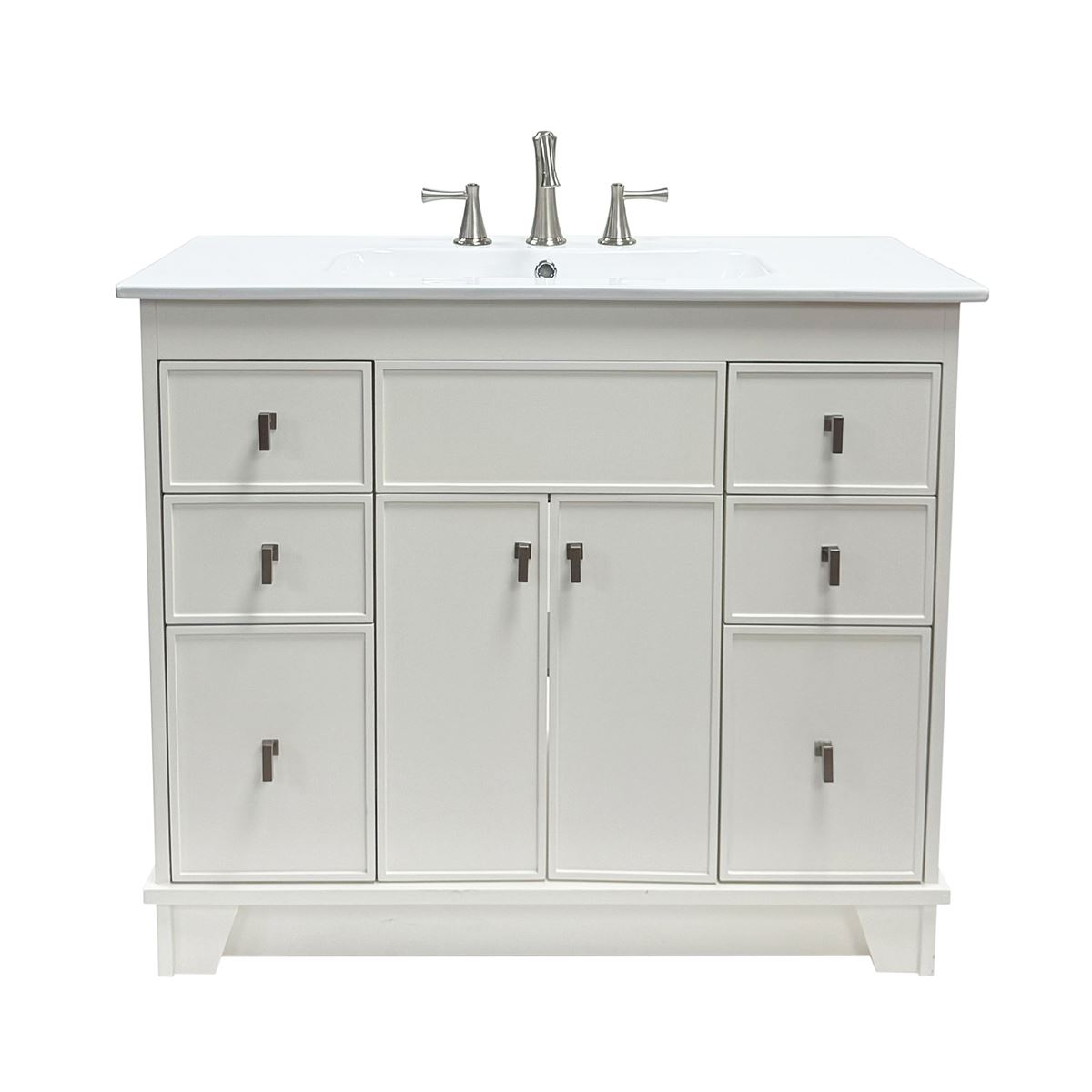 This single bathroom vanity brings clean lines and extra storage space to your main bathroom or guest bath. It's made from solid wood with a fresh, breezy finish that works well with any aesthetic, from coastal to the farmhouse. The 40" wide ceramic sink top surface gives you enough room for your daily use. There are two cabinet doors and six pull-out drawers with inset paneling open up to reveal ample storage space for big and small household items.