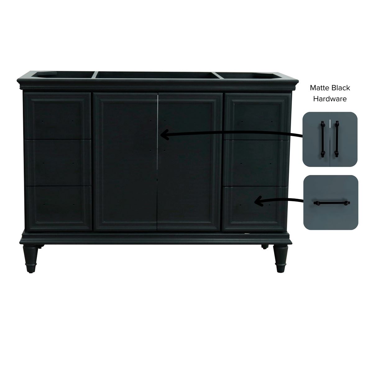 The Forli collection by Bellaterra Home features stunning bathroom vanities that can seamlessly integrate with any home design. The classic simplicity and elegance of this beautifully crafted piece of furniture will be the highly appreciated focal point in your bathroom. This vanity has six drawers and two cabinet doors that opens to a large ample storage space. The drawers are constructed with English dovetail and are installed with smooth full extension glides to provide durability. This vanity features black finish hardware. Cabinet only.
