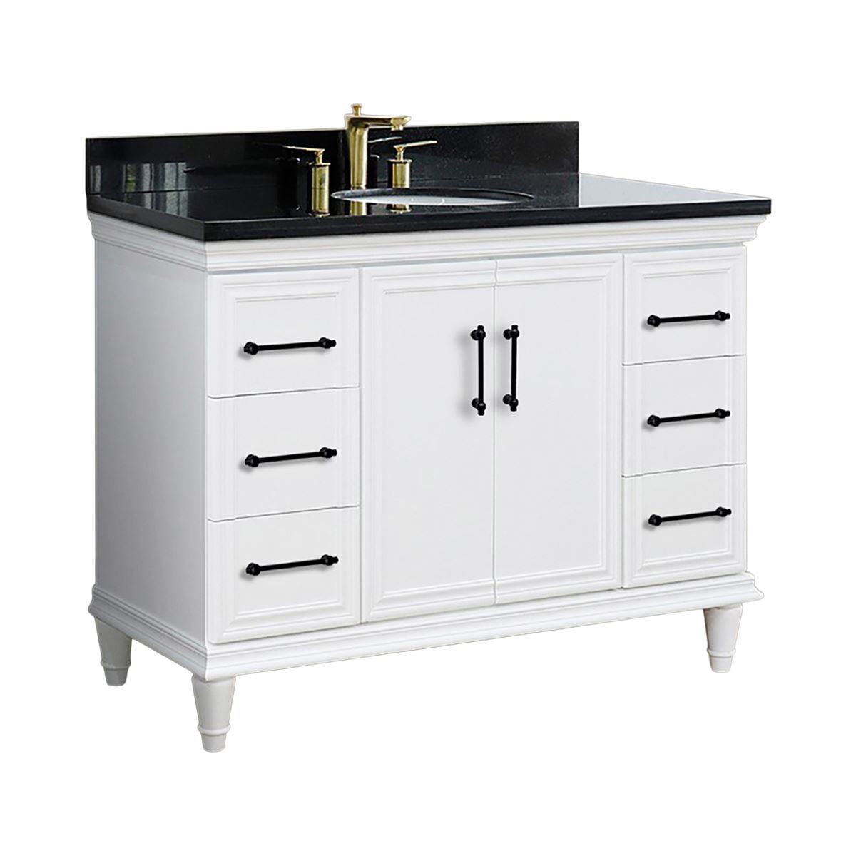 The Forli collection by Bellaterra Home features stunning bathroom vanities that can seamlessly integrate with any home design. The classic simplicity and elegance of this beautifully crafted piece of furniture will be the highly appreciated focal point in your bathroom. This vanity has six drawers and two cabinet doors that opens to a large ample storage space. The drawers are constructed with English dovetail and are installed with smooth full extension glides to provide durability. This vanity features black finish hardware and a beautiful counter top that is pre-sealed and polished for added protection. The bathroom vanity top is preinstalled with a white cUPC certified ceramic sink.