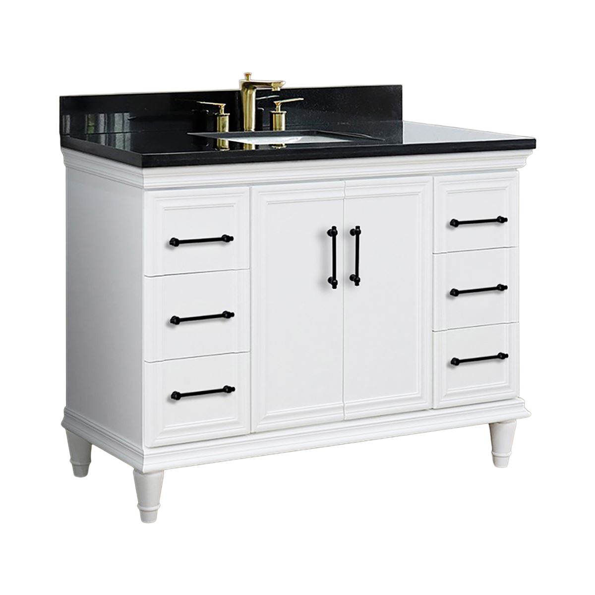 The Forli collection by Bellaterra Home features stunning bathroom vanities that can seamlessly integrate with any home design. The classic simplicity and elegance of this beautifully crafted piece of furniture will be the highly appreciated focal point in your bathroom. This vanity has six drawers and two cabinet doors that opens to a large ample storage space. The drawers are constructed with English dovetail and are installed with smooth full extension glides to provide durability. This vanity features black finish hardware and a beautiful counter top that is pre-sealed and polished for added protection. The bathroom vanity top is preinstalled with a white cUPC certified ceramic sink.
