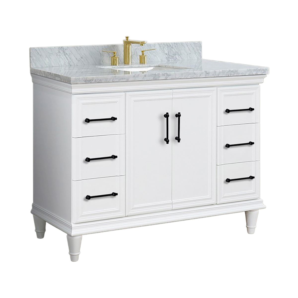 The Forli collection by Bellaterra Home features stunning bathroom vanities that can seamlessly integrate with any home design. The classic simplicity and elegance of this beautifully crafted piece of furniture will be the highly appreciated focal point in your bathroom. This vanity has six drawers and two cabinet doors that opens to a large ample storage space. The drawers are constructed with English dovetail and are installed with smooth full extension glides to provide durability. This vanity features black finish hardware and a beautiful counter top that is pre-sealed and polished for added protection. The bathroom vanity top is preinstalled with a white cUPC certified ceramic sink.