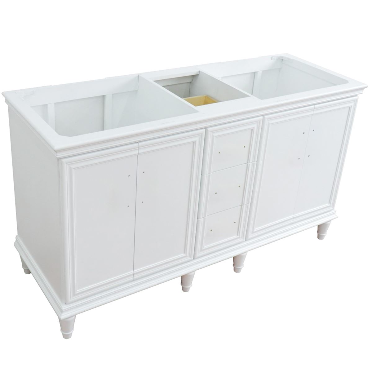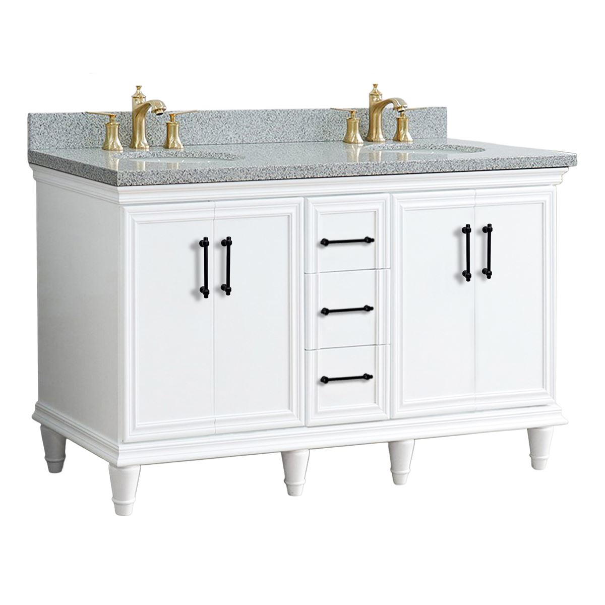 61" Double Sink Vanity in White Finish and Gray Granite and Oval Sinks