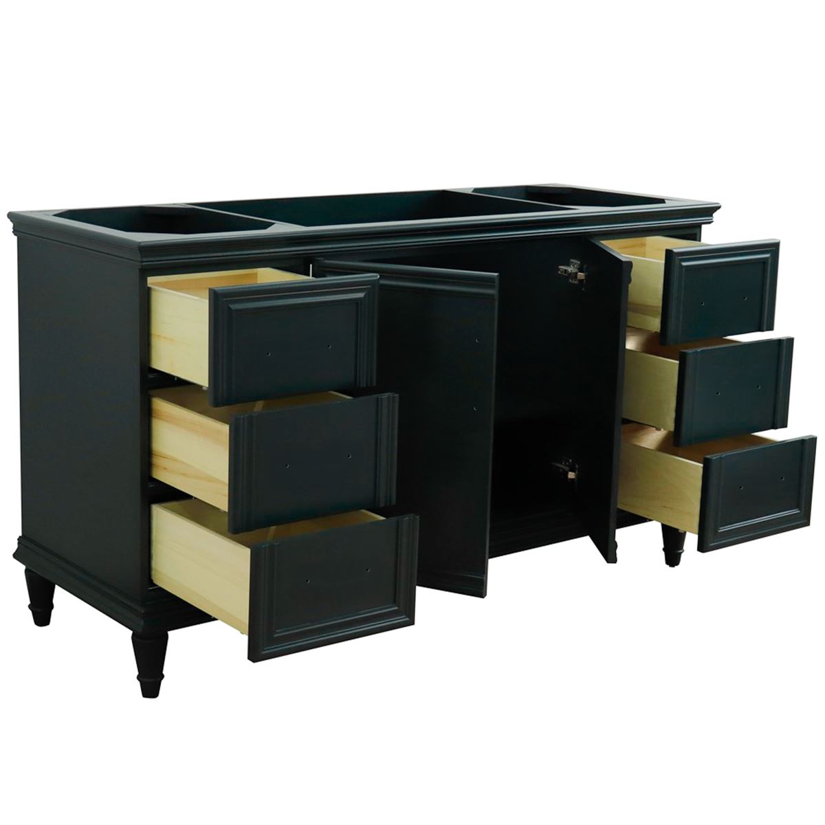 The Forli collection by Bellaterra Home features stunning bathroom vanities that can seamlessly integrate with any home design. The classic simplicity and elegance of this beautifully crafted piece of furniture will be the highly appreciated focal point in your bathroom. This vanity has six drawers and two cabinet doors that open to a large ample storage space. The drawers are constructed with English dovetail and are installed with smooth full extension glides to provide durability. This vanity features black finish hardware and a beautiful counter top that is pre-sealed and polished for added protection. The bathroom vanity top is preinstalled with a white cUPC certified ceramic sink.