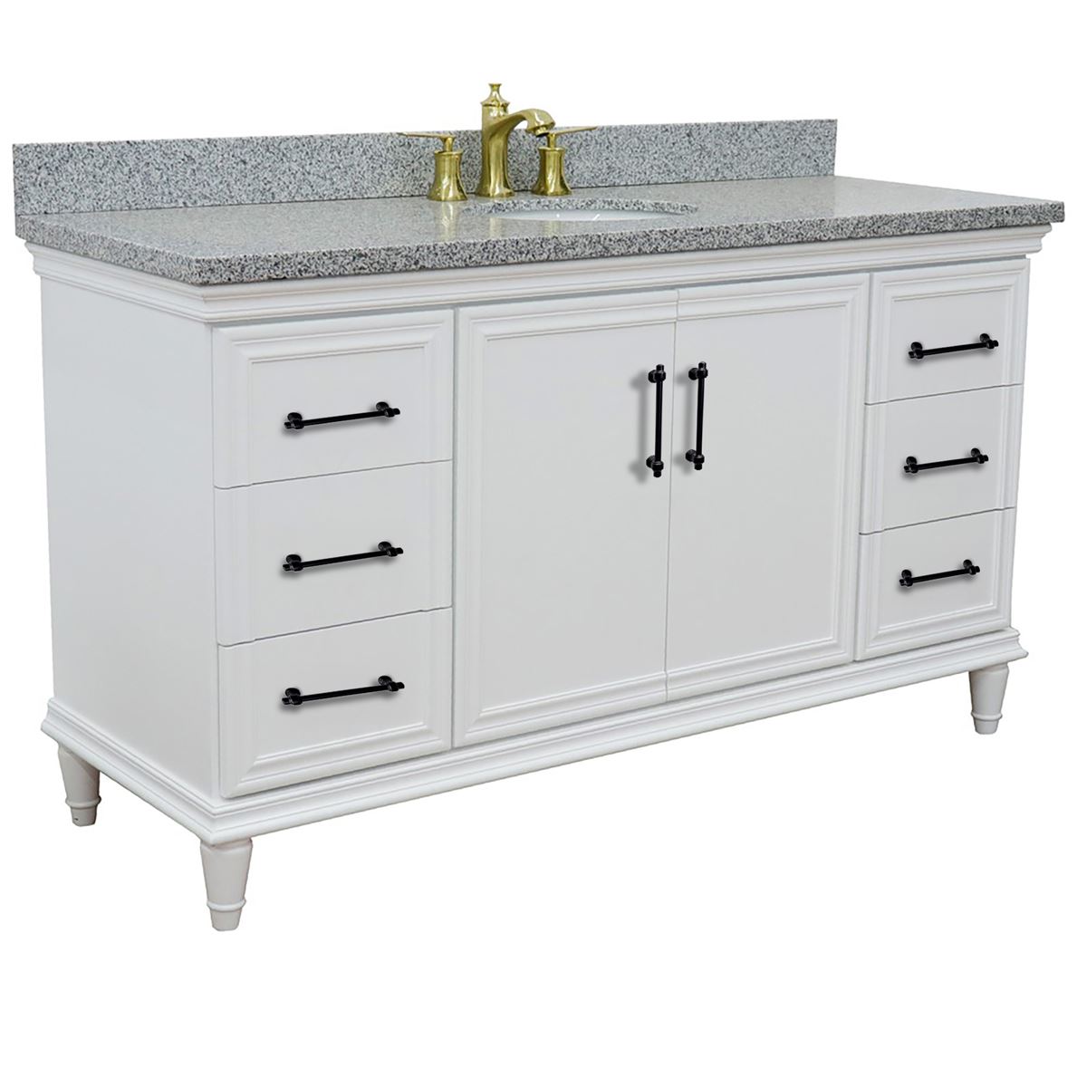 The Forli collection by Bellaterra Home features stunning bathroom vanities that can seamlessly integrate with any home design. The classic simplicity and elegance of this beautifully crafted piece of furniture will be the highly appreciated focal point in your bathroom. This vanity has six drawers and two cabinet doors that open to a large ample storage space. The drawers are constructed with English dovetail and are installed with smooth full extension glides to provide durability. This vanity features black finish hardware and a beautiful counter top that is pre-sealed and polished for added protection. The bathroom vanity top is preinstalled with a white cUPC certified ceramic sink.