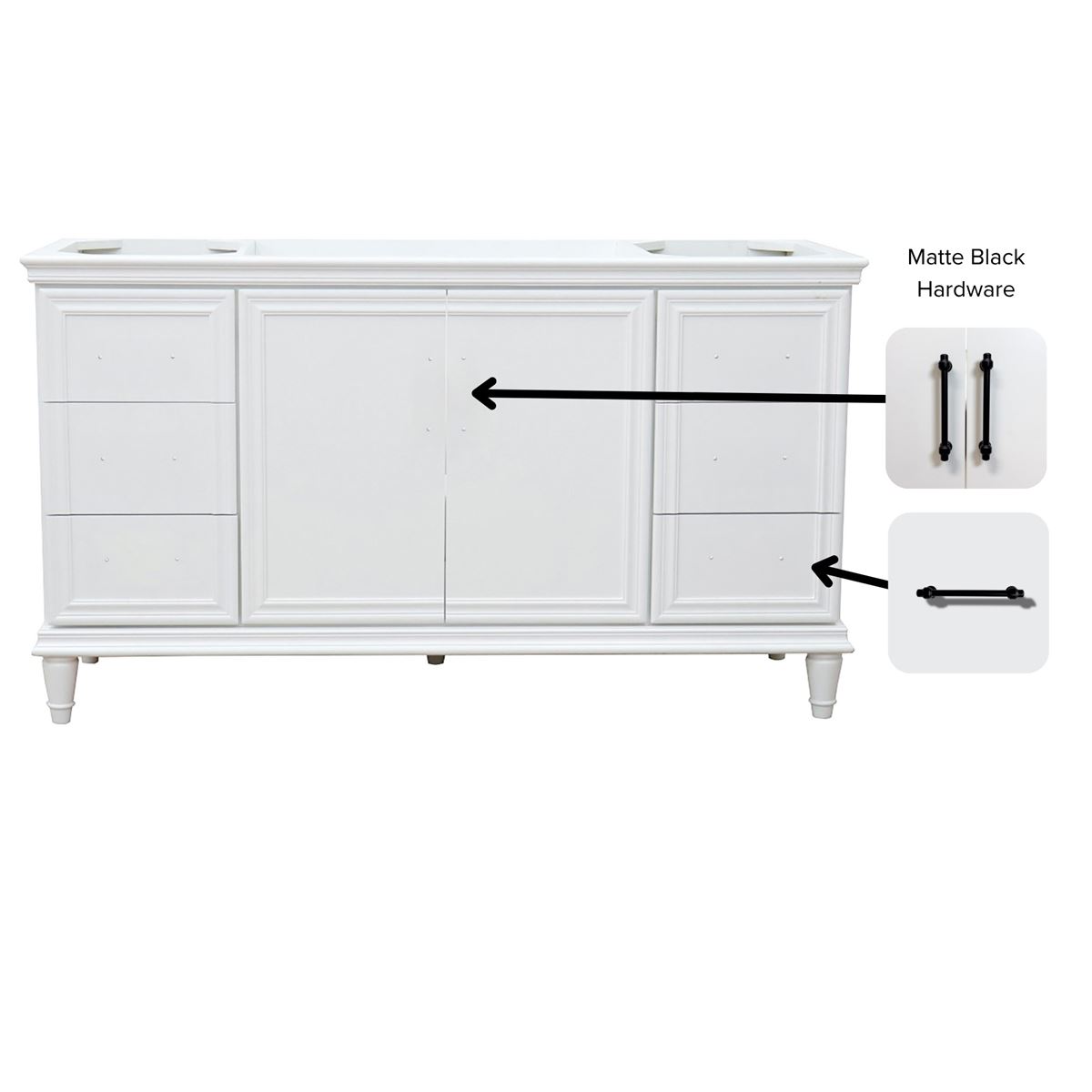 The Forli collection by Bellaterra Home features stunning bathroom vanities that can seamlessly integrate with any home design. The classic simplicity and elegance of this beautifully crafted piece of furniture will be the highly appreciated focal point in your bathroom. This vanity has six drawers and two cabinet doors that open to a large ample storage space. The drawers are constructed with English dovetail and are installed with smooth full extension glides to provide durability. This vanity features black finish hardware and a beautiful counter top that is pre-sealed and polished for added protection. The bathroom vanity top is preinstalled with a white cUPC certified ceramic sink.