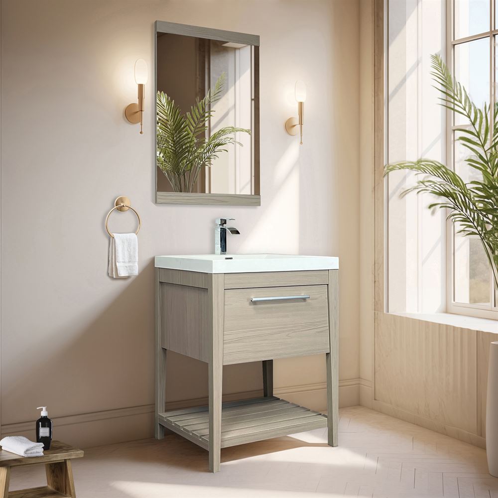 - Furniture grade semi-closing waterproof wood finish protects against bathroom humidity