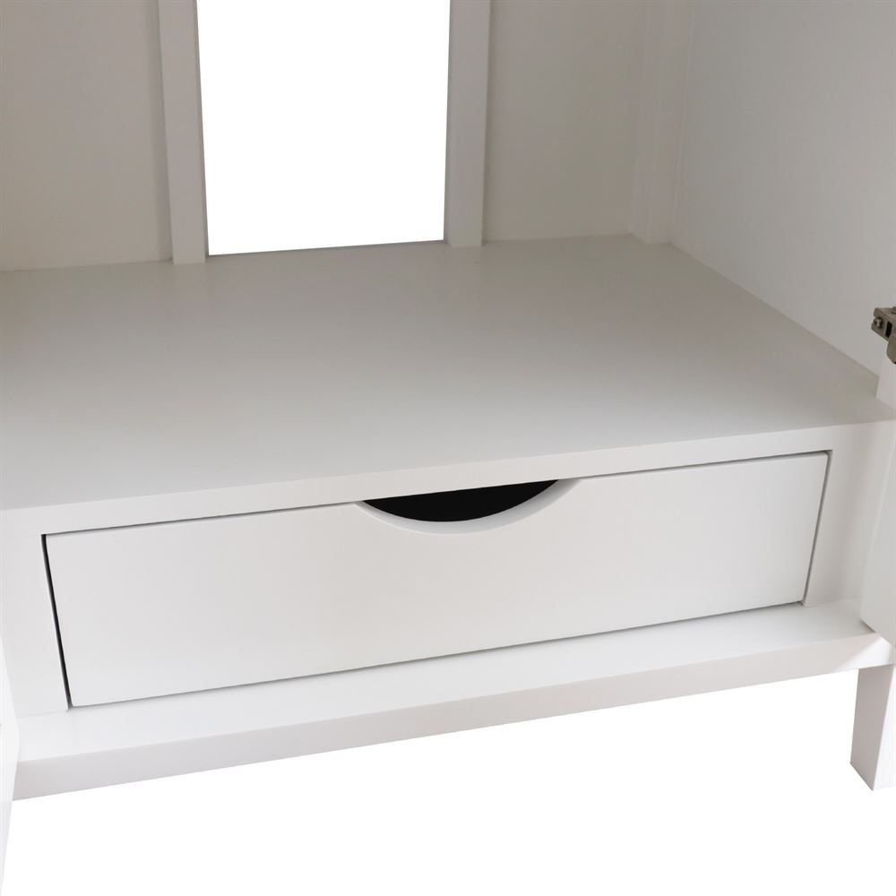 - Waterproof wood finish protects against bathroom humidity
