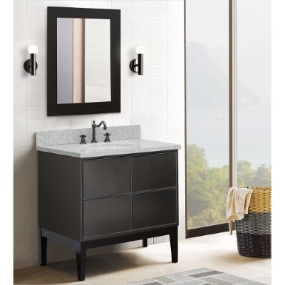 37 in. Single Vanity in Cappuccino Finish with Gray Granite Top and Oval Sink, Cafe Collection
