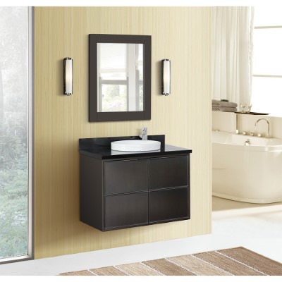 DISCONTINUED : 37 in. Single Wall Mount Vanity in Cappuccino Finish with Black Galaxy Top