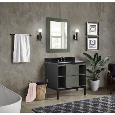 37 in. Single Vanity in Linen Gray Finish with Black Galaxy Top and Oval Sink, Paris Exposed Collection