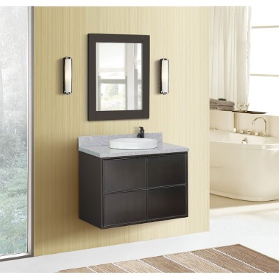 37 in. Single Wall Mount Vanity in Cappuccino Finish with Gray Granite Top and Round Sink, Cafe Collection