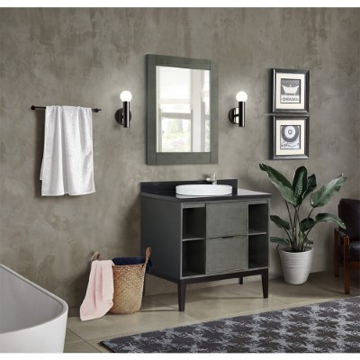 DISCONTINUED : 37 in. Single Vanity in Linen Gray Finish with Black Galaxy Top and Round Sink