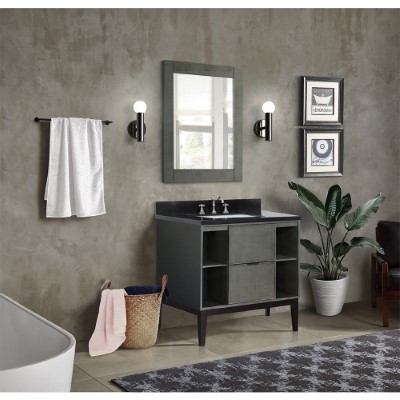 37 in. Single Vanity in Linen Gray Finish with Black Galaxy Top and Rectangle Sink, Paris Exposed Collection