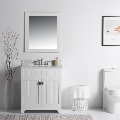 31 in. Single Sink Vanity in White Finish with White Carrara Marble with Rectangle Sink