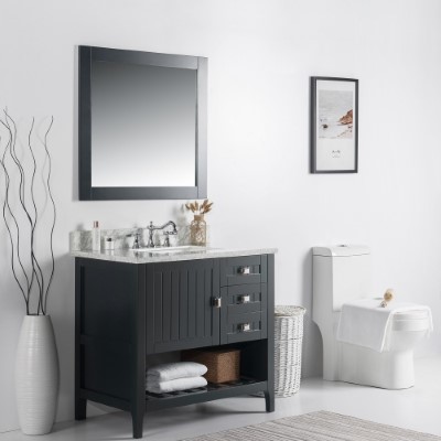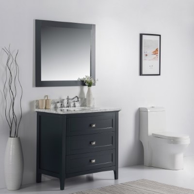 DISCONTINUED : 36 in. Single Vanity-Dark Gray-White Marble Top