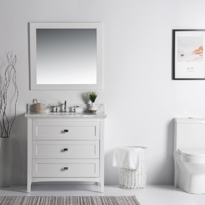 DISCONTINUED : 36 in. Single Vanity-White-White Marble Top